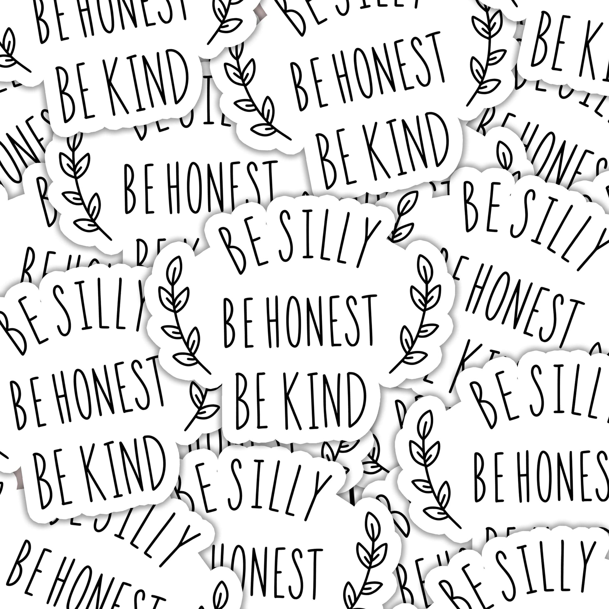 A simple guide to living well: be silly, be honest, be kind. This sticker is a reminder to stay true to yourself every day.