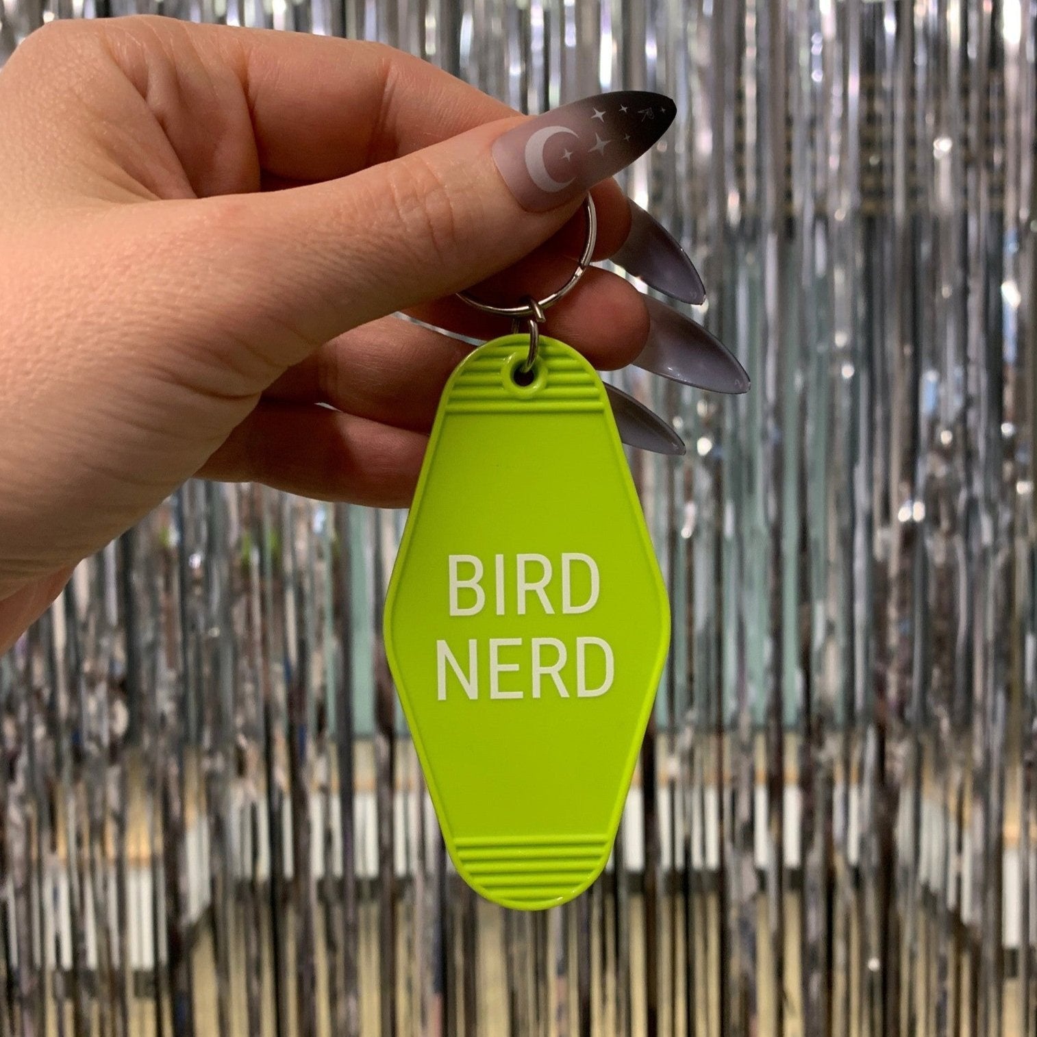 Looking for a unique gift for the bird nerd in your life? This lime green Bird Nerd motel style keychain is a fun and quirky addition to any collection. ๐๐ With its motel style design and bold BIRD NERD lettering, this plastic and metal keychain is a standout accessory for bird lovers. Makes a thoughtful gift for anyone who's passionate about our feathered friends. ๐ฆ๐จโจ