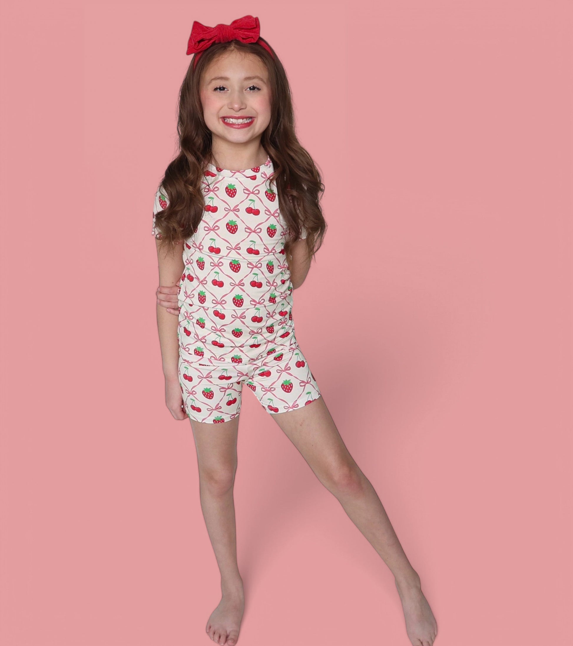 Perfect for rest and play, this short set is a must-have for any little one who loves to lounge in style. Whether they're winding down for bedtime or enjoying a sunny day, the Cherry Bow Berry Dream Short Set is the ideal combination of fun, function, and comfort. A perfect addition to your child's spring wardrobe, this set is sure to become a favorite!