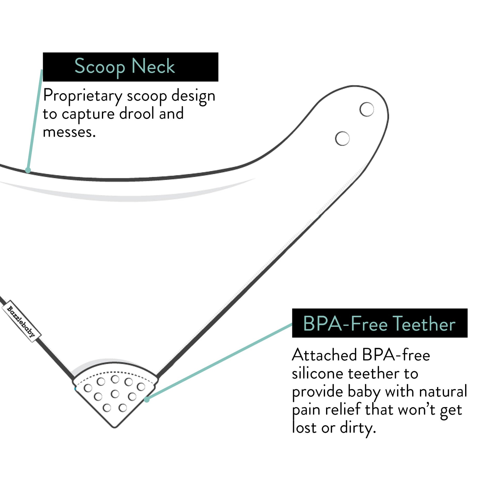 The BandaBib with Teether 4-Pack is designed to keep your baby dry and stylish while offering soothing relief during teething. Each bib is made from absorbent material to catch drool and features a soft, BPA-free silicone teether attached to soothe sore gums. The scoop neck design ensures a snug and comfortable fit, while the bibs are machine washable for easy care. Plus, they come with a 100% money-back guarantee for peace of mind.