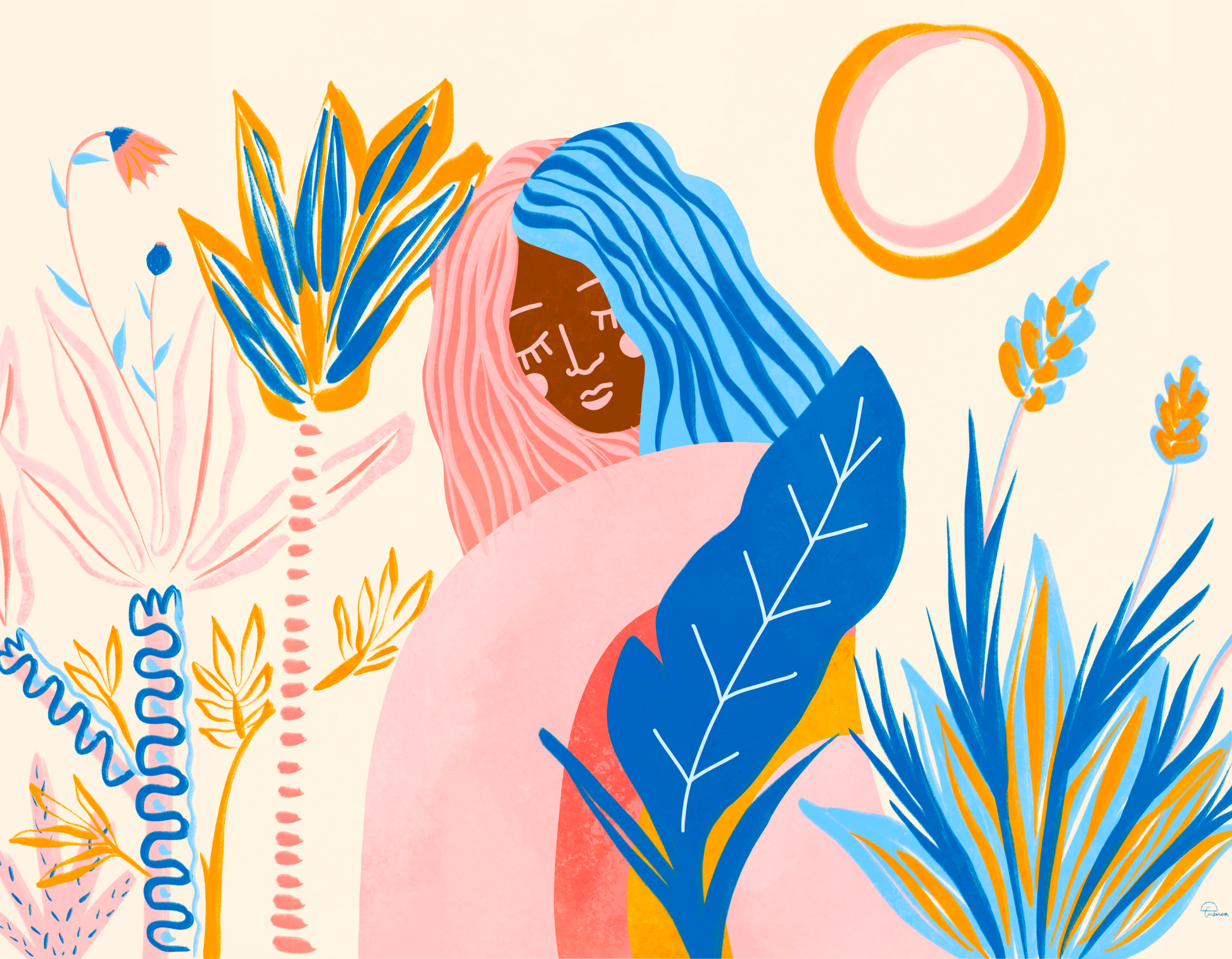 Dora Cuenca is a Costa Rican illustrator, surface designer and muralist. As a mother of three little wild ones, a lot of her work draws inspiration from motherhood’s collective memory. She loves to play with warm tones, organic lines and bright pops of color on a daily basis. While creating, she gives shape and color to her feelings, memories and mental patterns often transforming the heavy into light. Art is the gift that has allowed her to reconnect with herself and others. It is a practice that has helped her overcome adversity and cultivate joy and gratefulness.