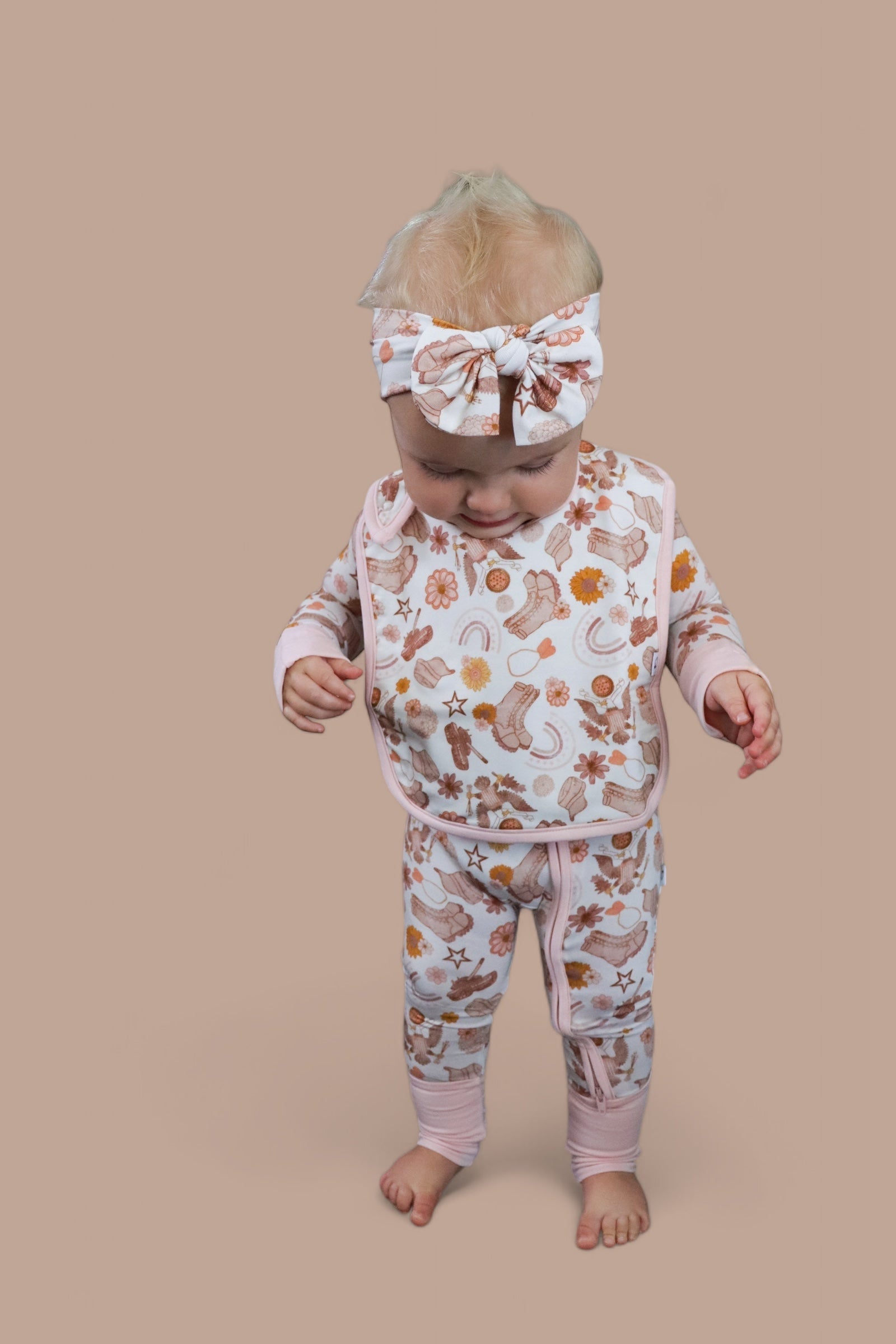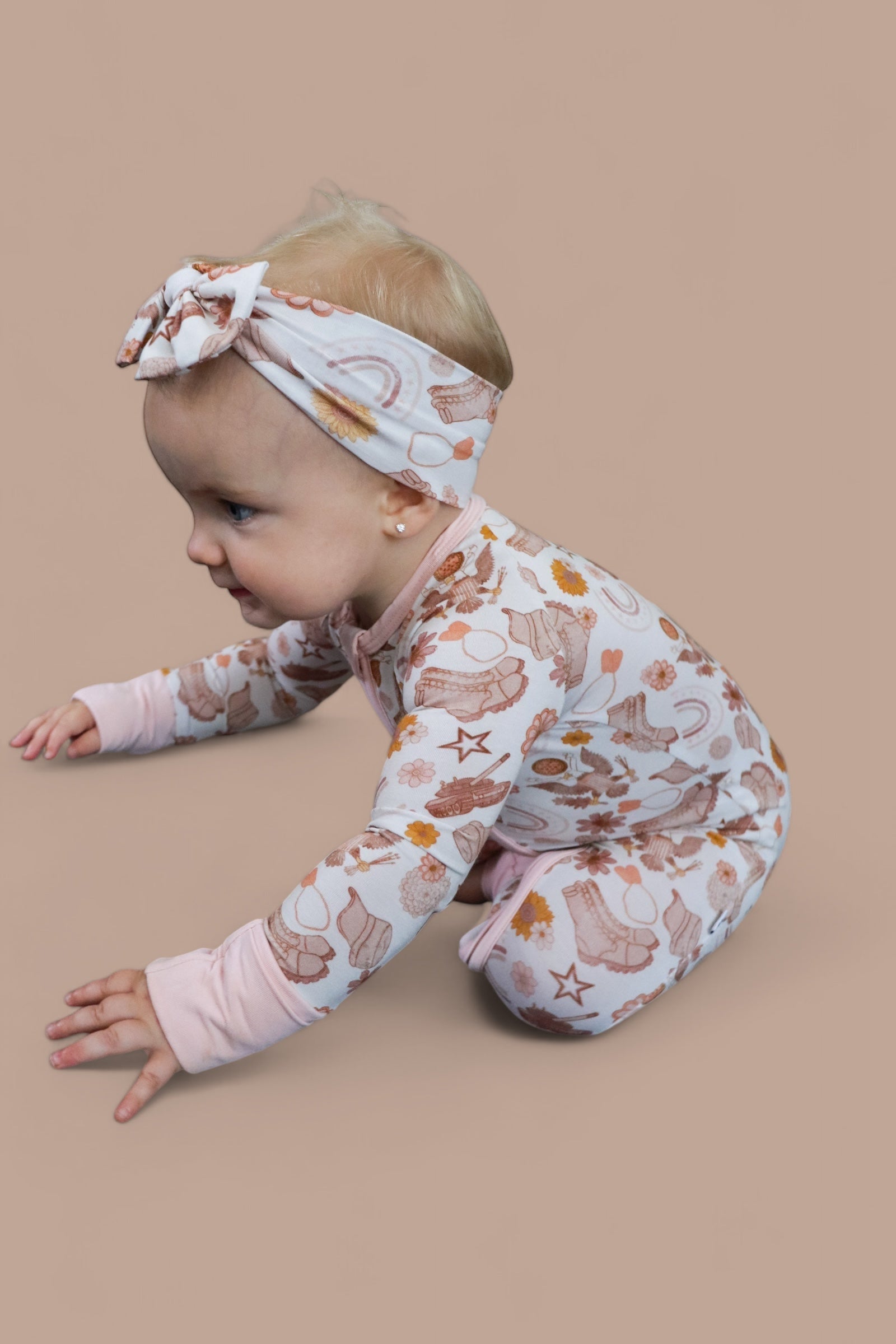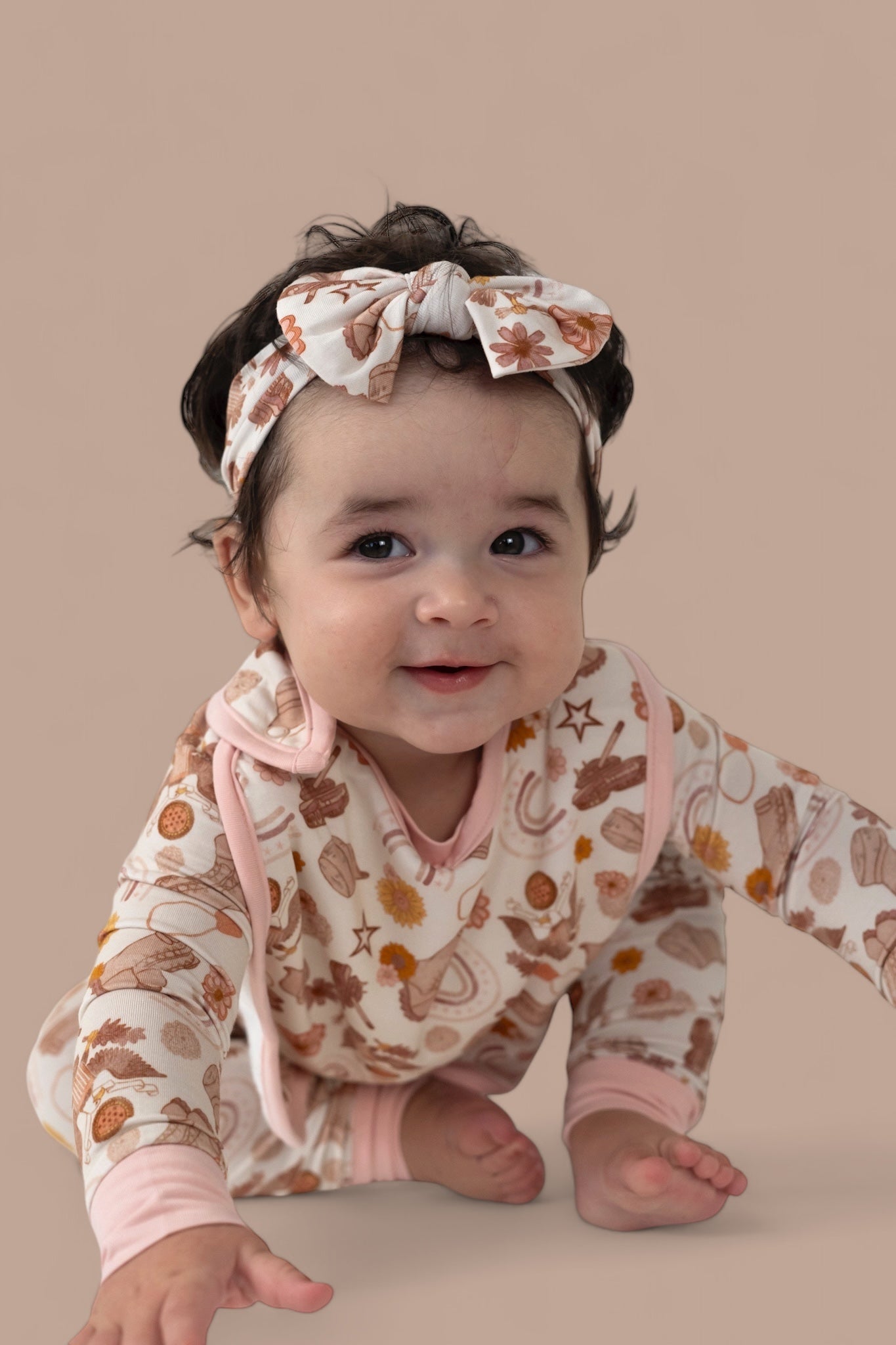 The lightweight construction ensures that your little one can wear it comfortably, while the adorable military-inspired print adds a unique flair. Perfect for photoshoots, playdates, or everyday wear, this bamboo bow is not only practical but also a fashion statement. Give your child the gift of style with the Flowers and Boots Dream Bow and let their personality shine through with this charming addition to their accessory collection!