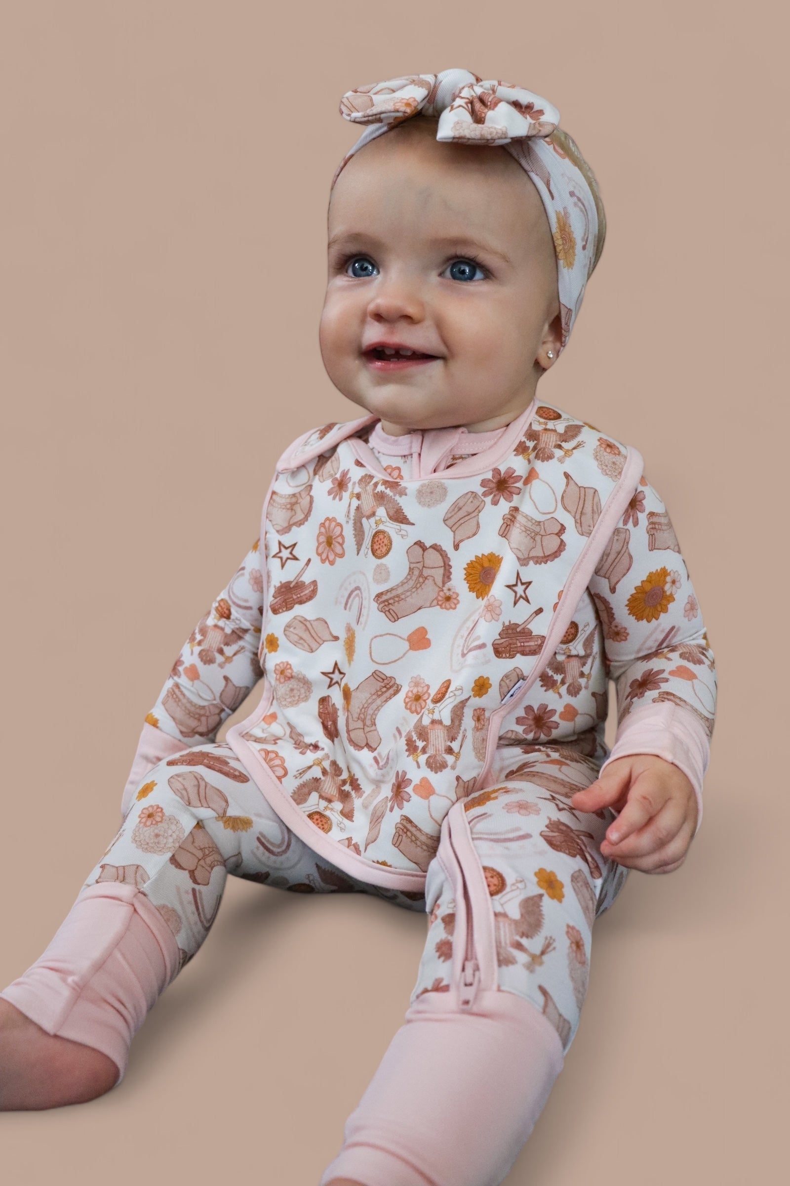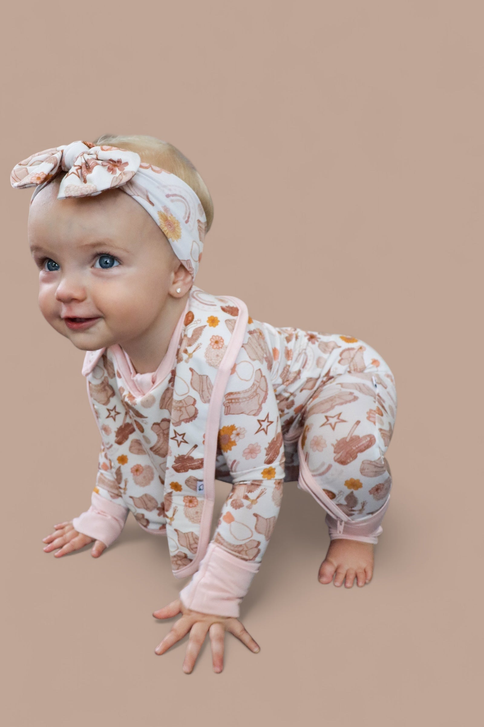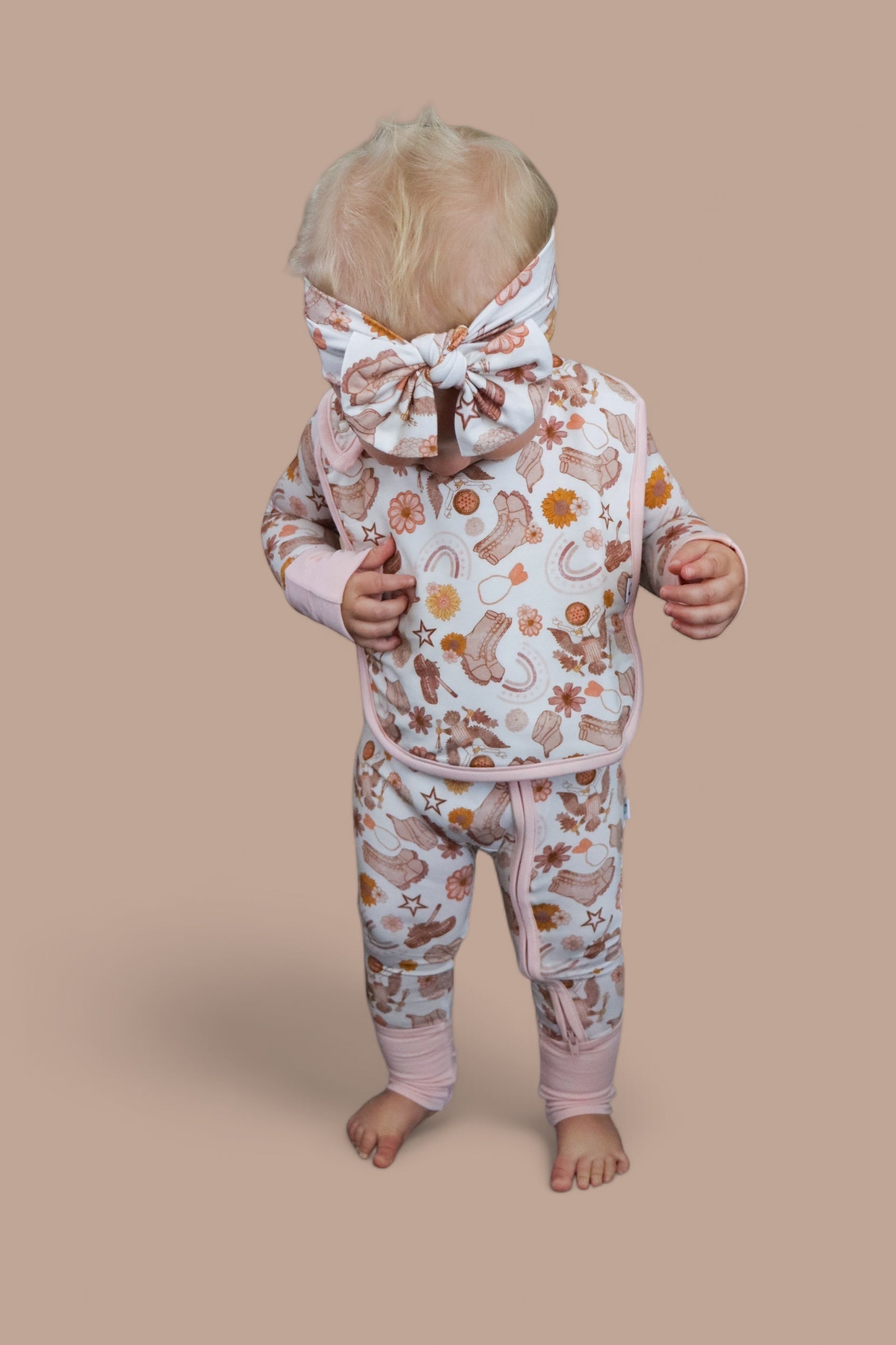 The Flowers and Boots Dream Bow is the perfect accessory for your little one, combining a cute military design with exceptional comfort. Crafted from the softest and most breathable bamboo viscose material, this headband bow ensures that your babe will enjoy all-day wear without any irritation. The gentle fabric is perfect for sensitive skin, making it an ideal choice for stylish little ones.