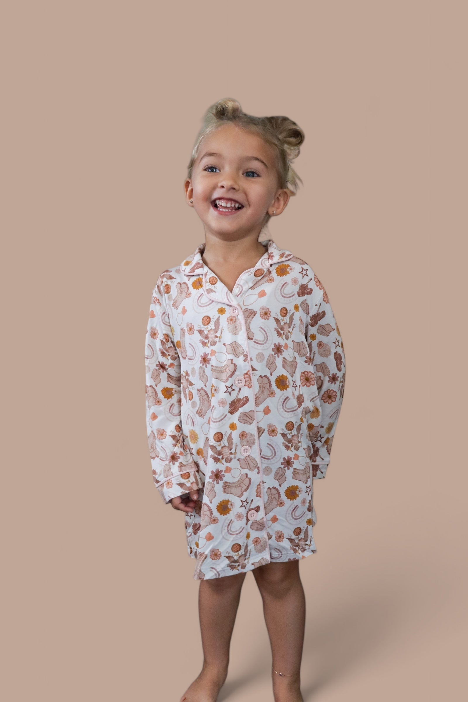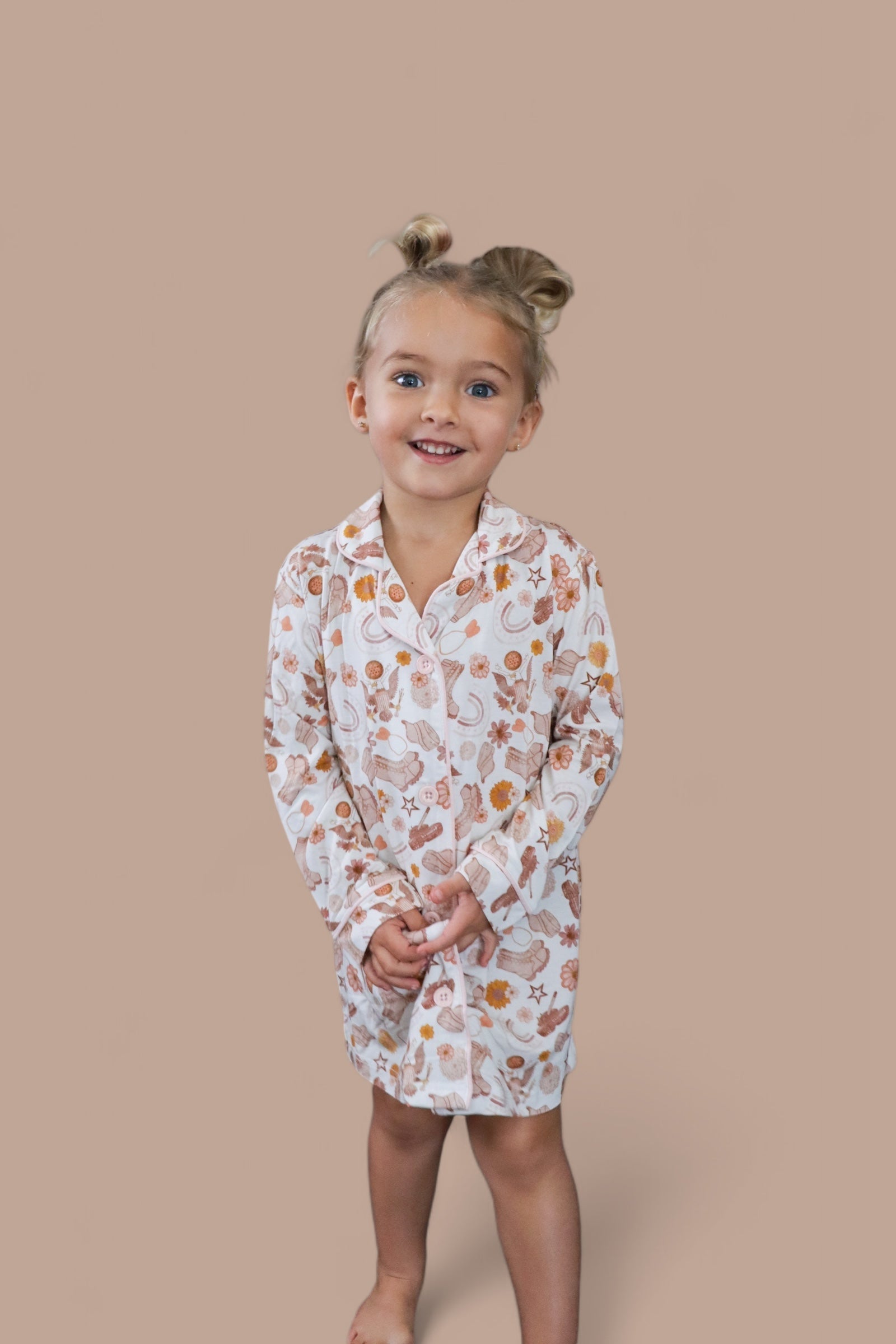 Elevate your child’s nighttime wardrobe with this delightful gown that brings together comfort and playful style. It’s an ideal gift for birthdays, holidays, or just because! Treat your child to the Flowers and Boots Girl’s Dream Gown and watch as they drift into dreamy adventures in style and comfort.