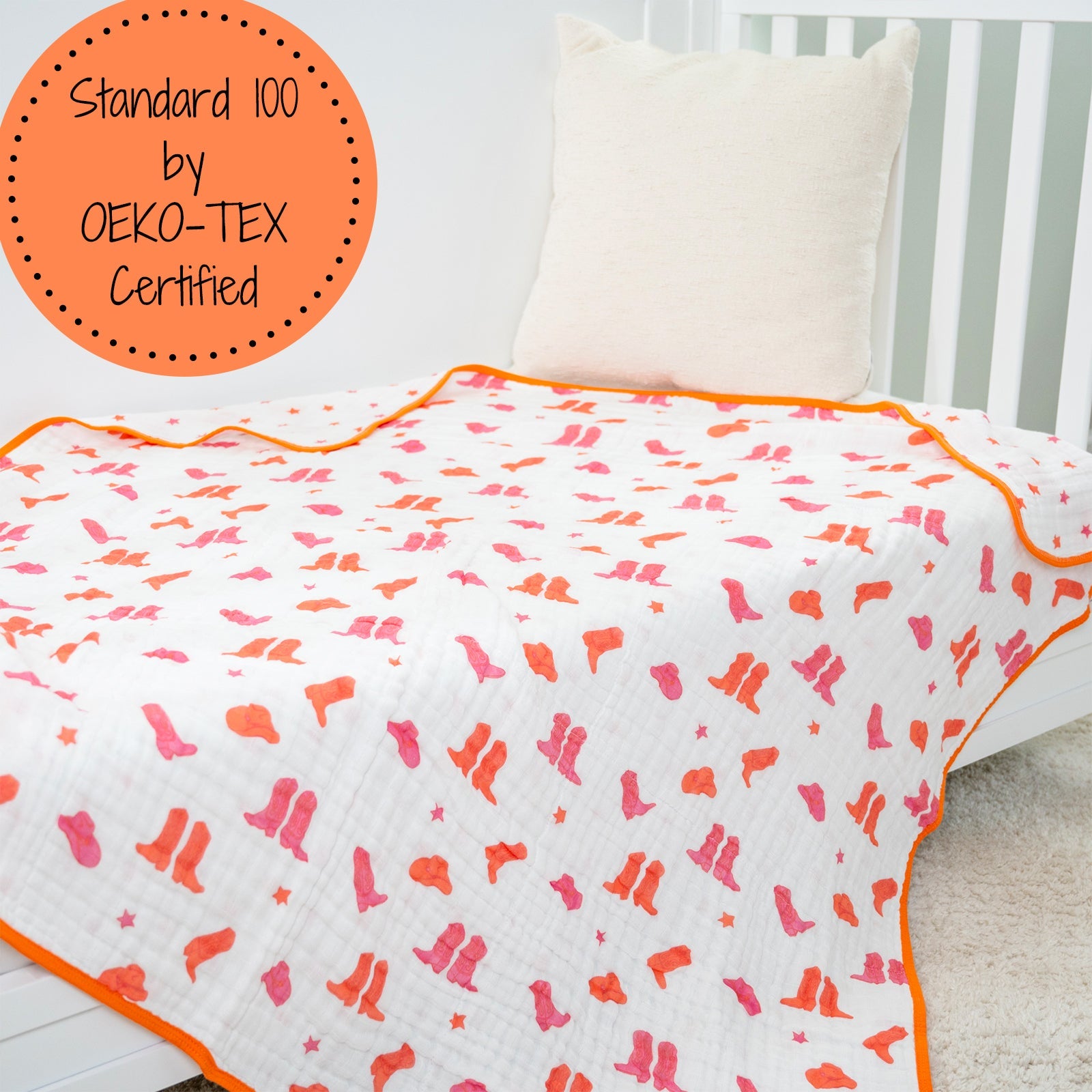 - SWEET PINK COWBOY BOOTS DESIGN - Featuring charming pink cowboy boots, this blanket adds a whimsical touch of western flair to your baby’s nursery. Its playful design and soft fabric create a cozy, stylish atmosphere, making it an ideal gift for baby showers or birthdays, perfect for little cowboys and cowgirls!