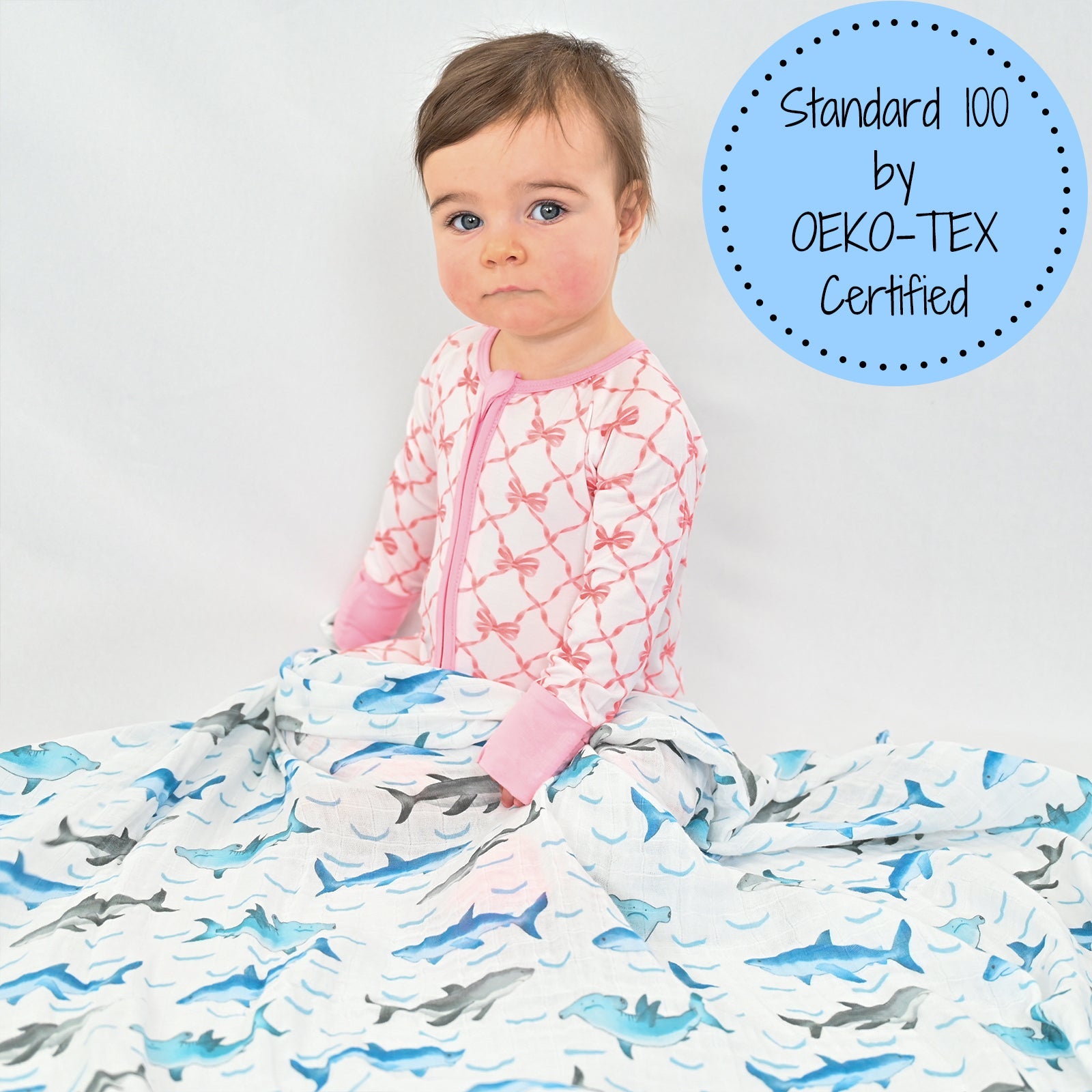 LollyBanks Muslin Swaddle Blankets, 100% Cotton Baby Blanket, 47"x 47" Newborn Swaddle Blanket, (Shark Print)
