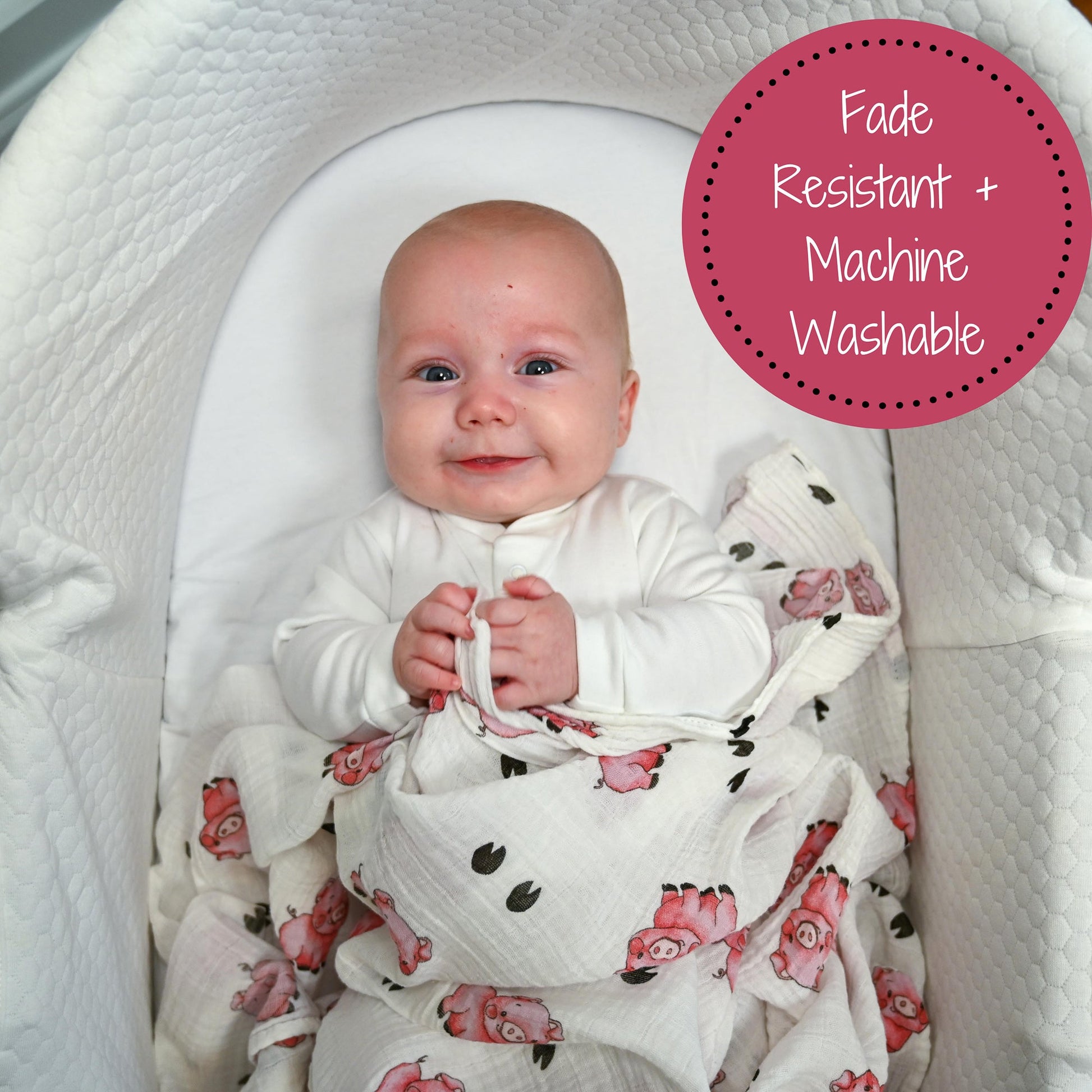 - SOFT AND COZY SWADDLING BLANKET - Wrap your little loves in Lollybanks extra soft 100% cotton muslin pig swaddle blanket to make your baby feel safe and secure. Each 47x47 blanket provides enough space to snuggly and securely wrap your newborn as well as provide comfort through the toddler years.