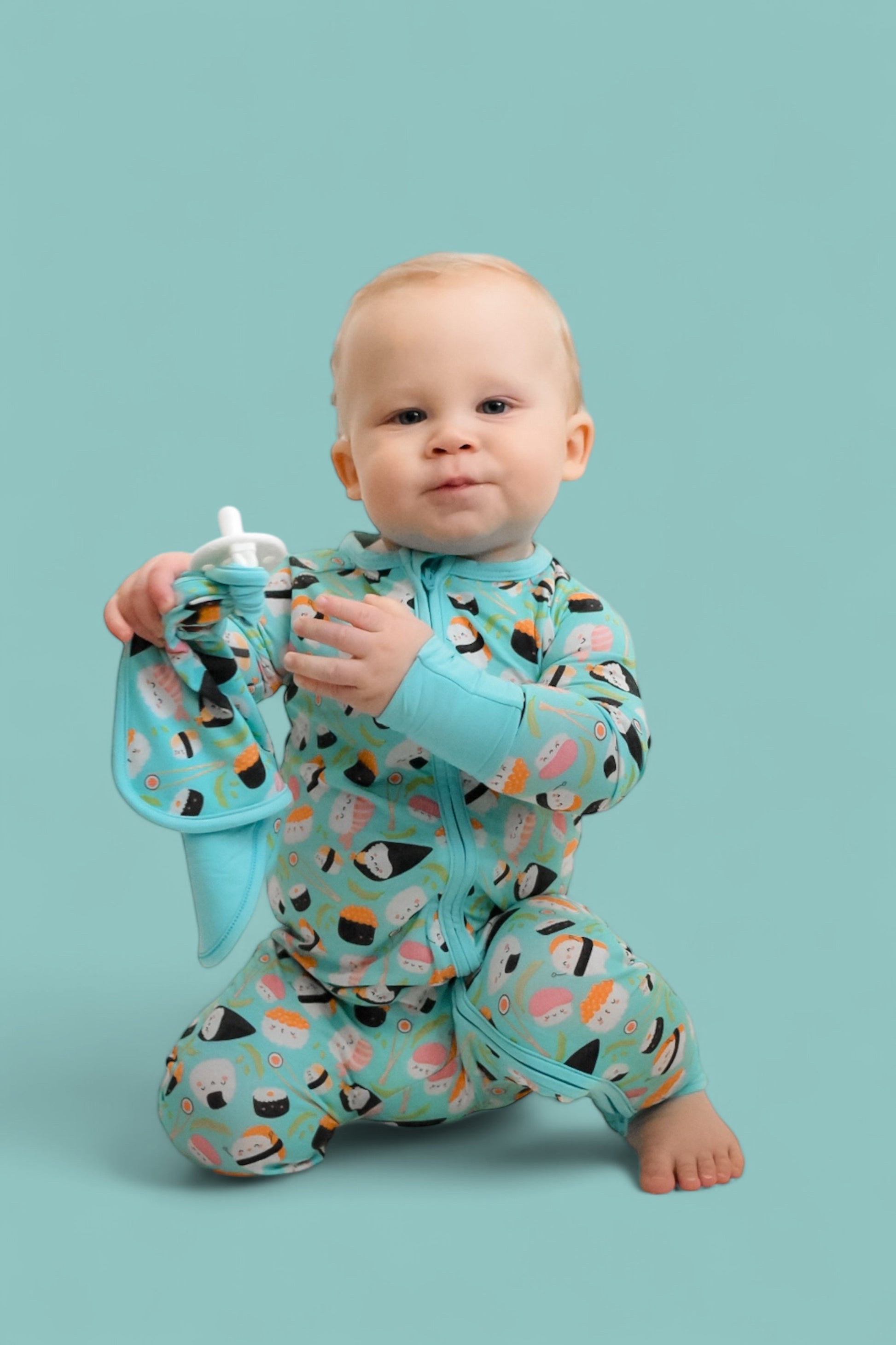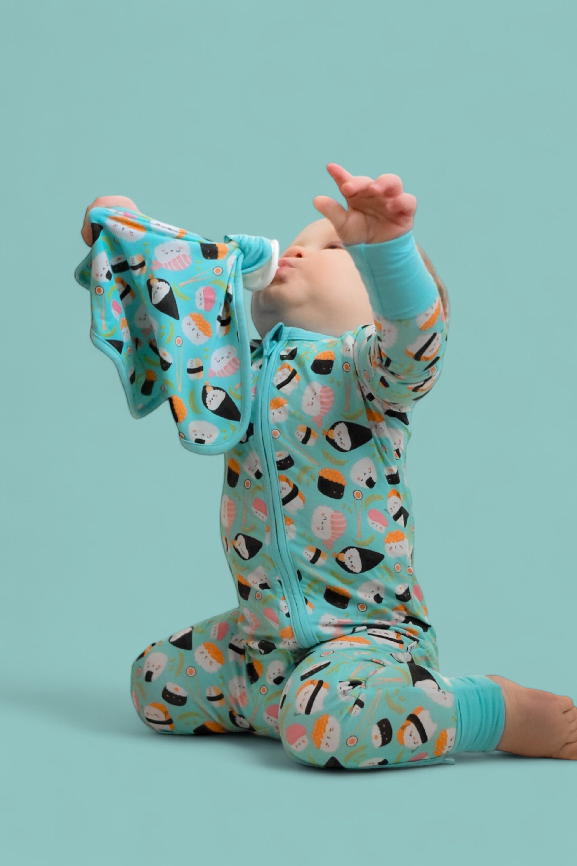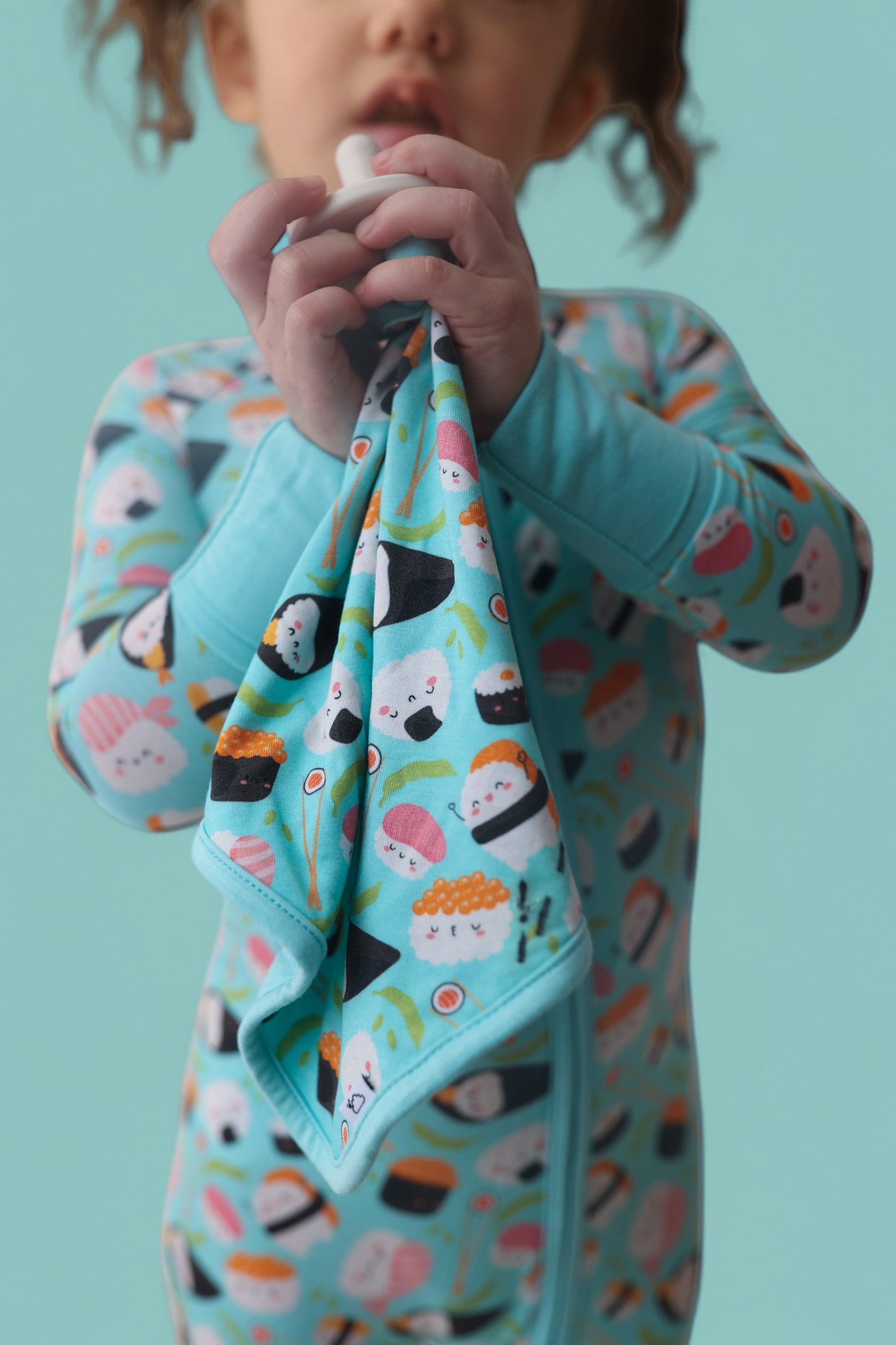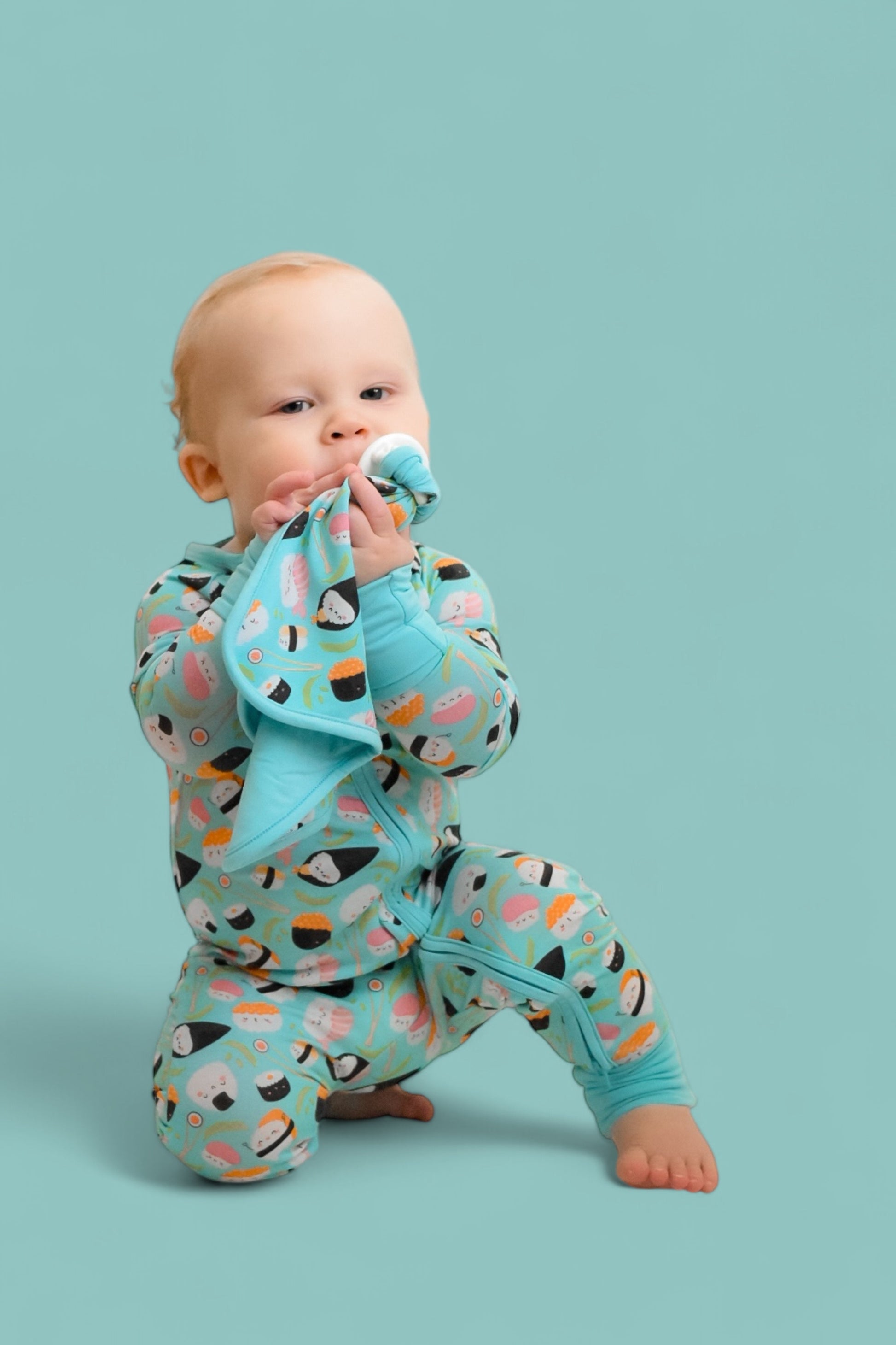 Whether it’s tummy time, naptime, or just a sushi-loving day out, the Rolling Into Sushi Dream Lovey delivers cuteness, functionality, and endless snuggles. Pair it with other matching items from our sushi collection to roll up the fun and complete your nursery vibe.