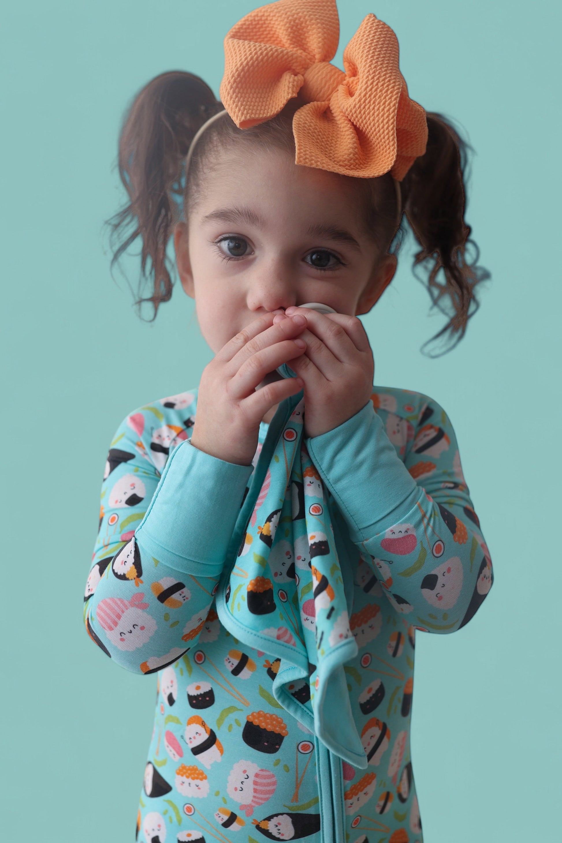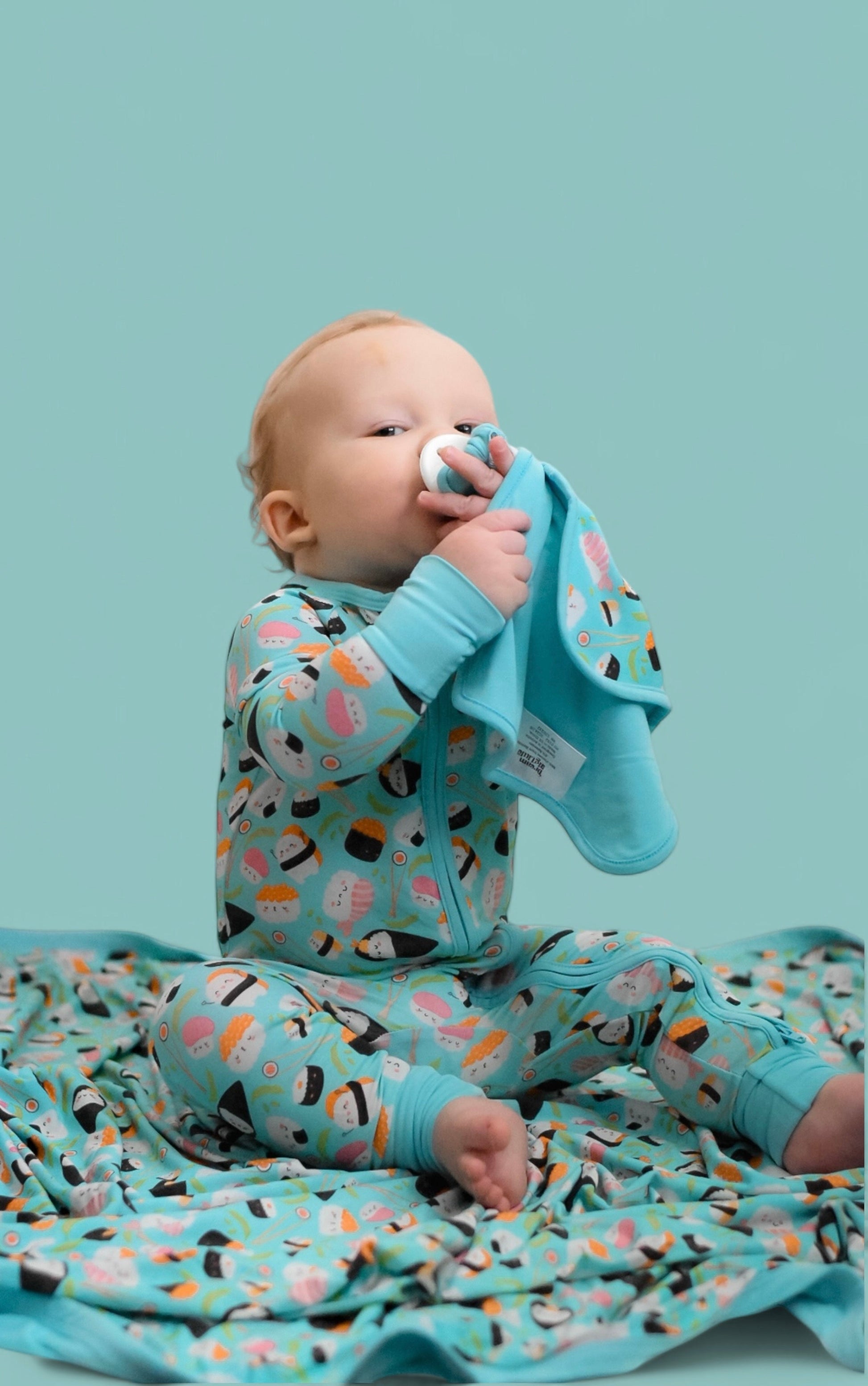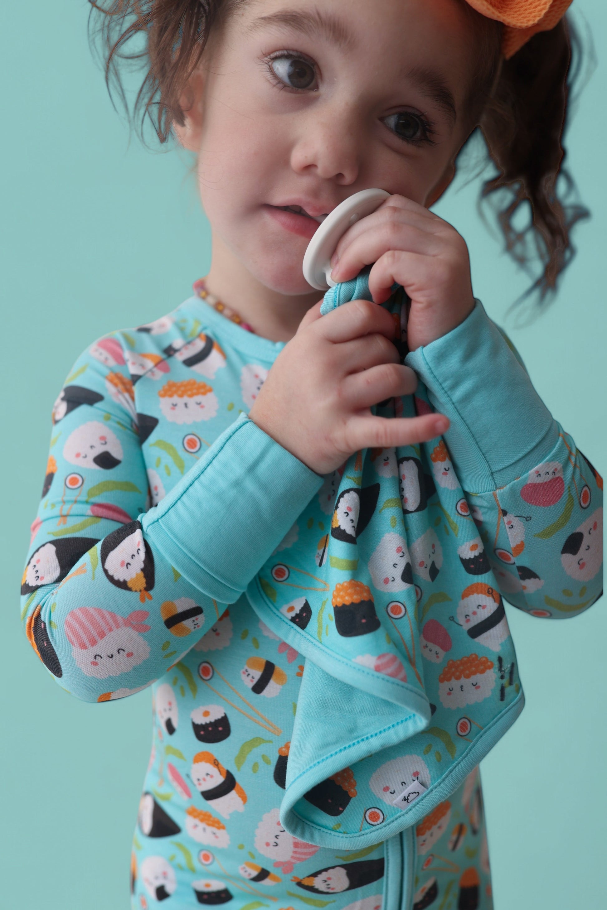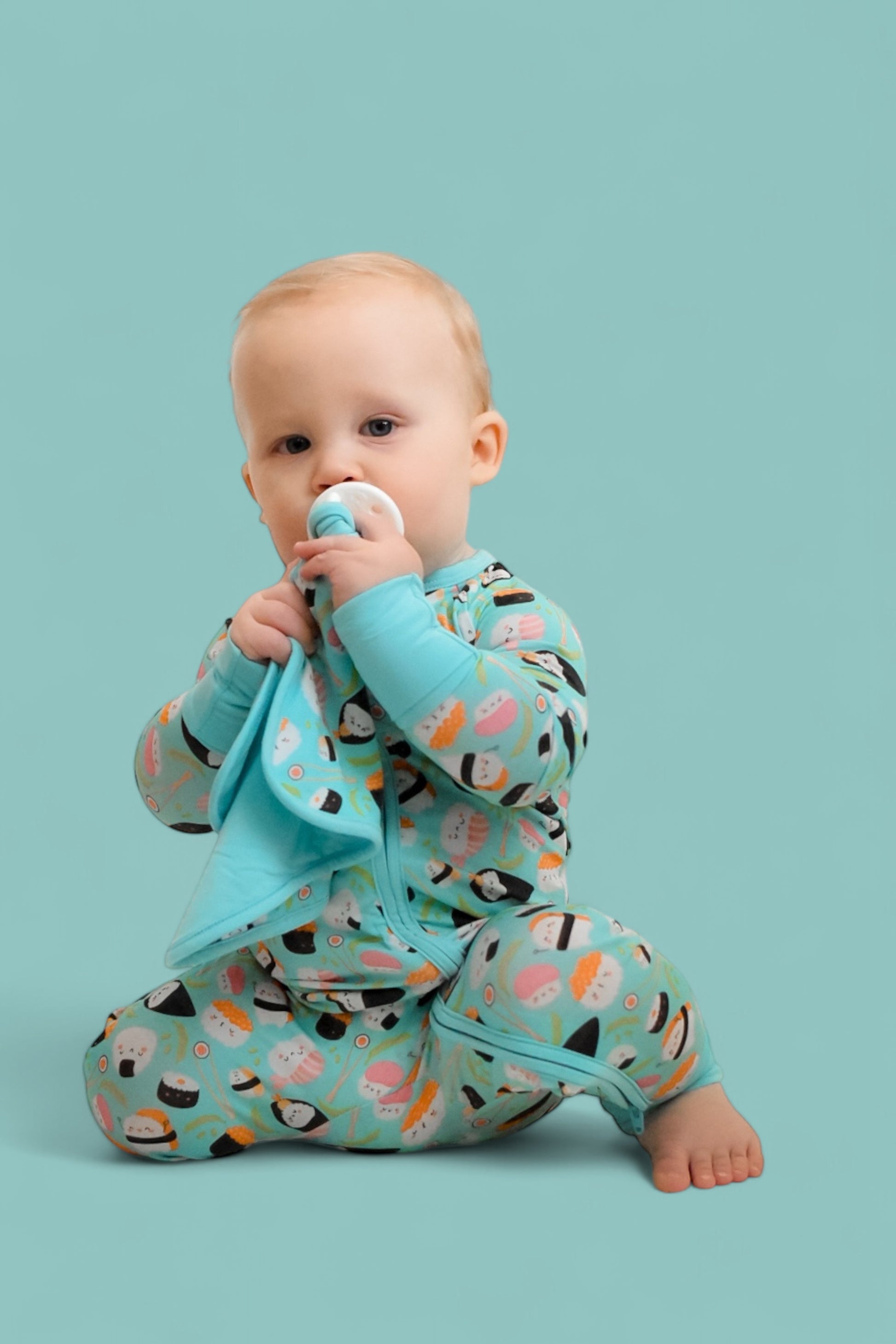 Whether it’s tummy time, naptime, or just a sushi-loving day out, the Rolling Into Sushi Dream Lovey delivers cuteness, functionality, and endless snuggles. Pair it with other matching items from our sushi collection to roll up the fun and complete your nursery vibe.