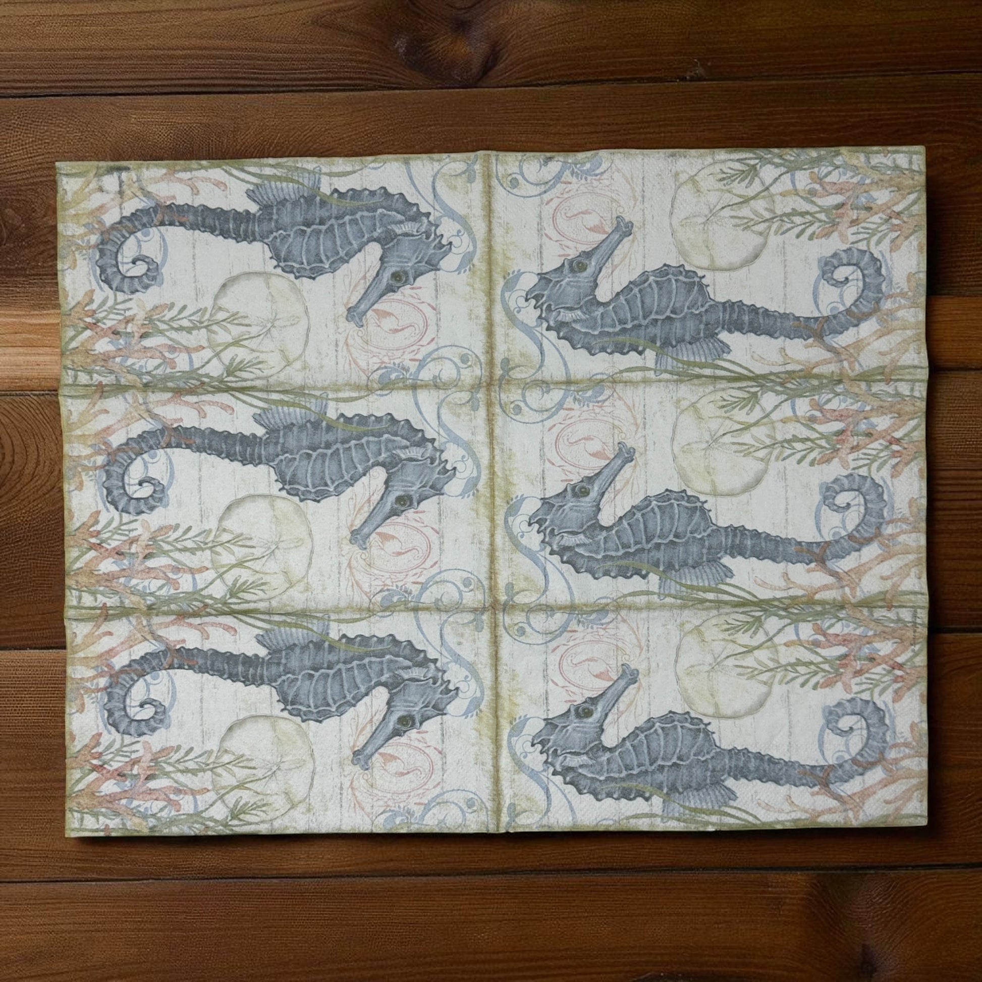Seahorse Decoupage Napkins | Celebrate the Home | Guest Size 3-Ply Paper Napkins