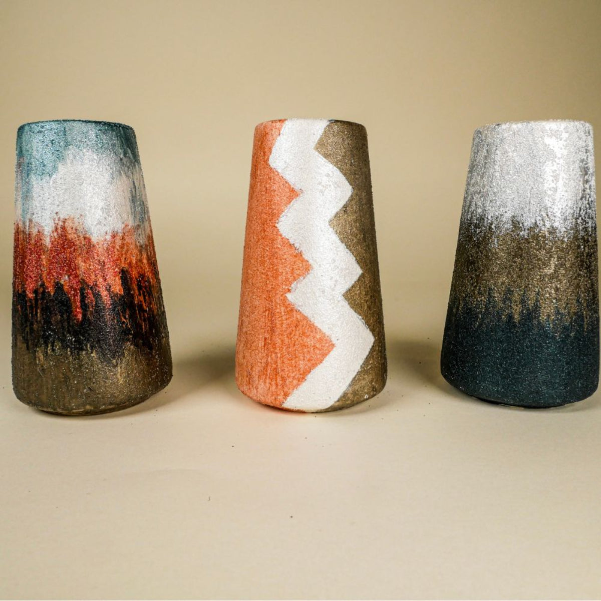 This craft kit includes five sugar metallic paints, three vases, and all the materials needed to create this textured art. In addition to glass, the paint can be used on wood, ceramic, canvas, terra cotta, and metal. Crafters will need water and paper towels.