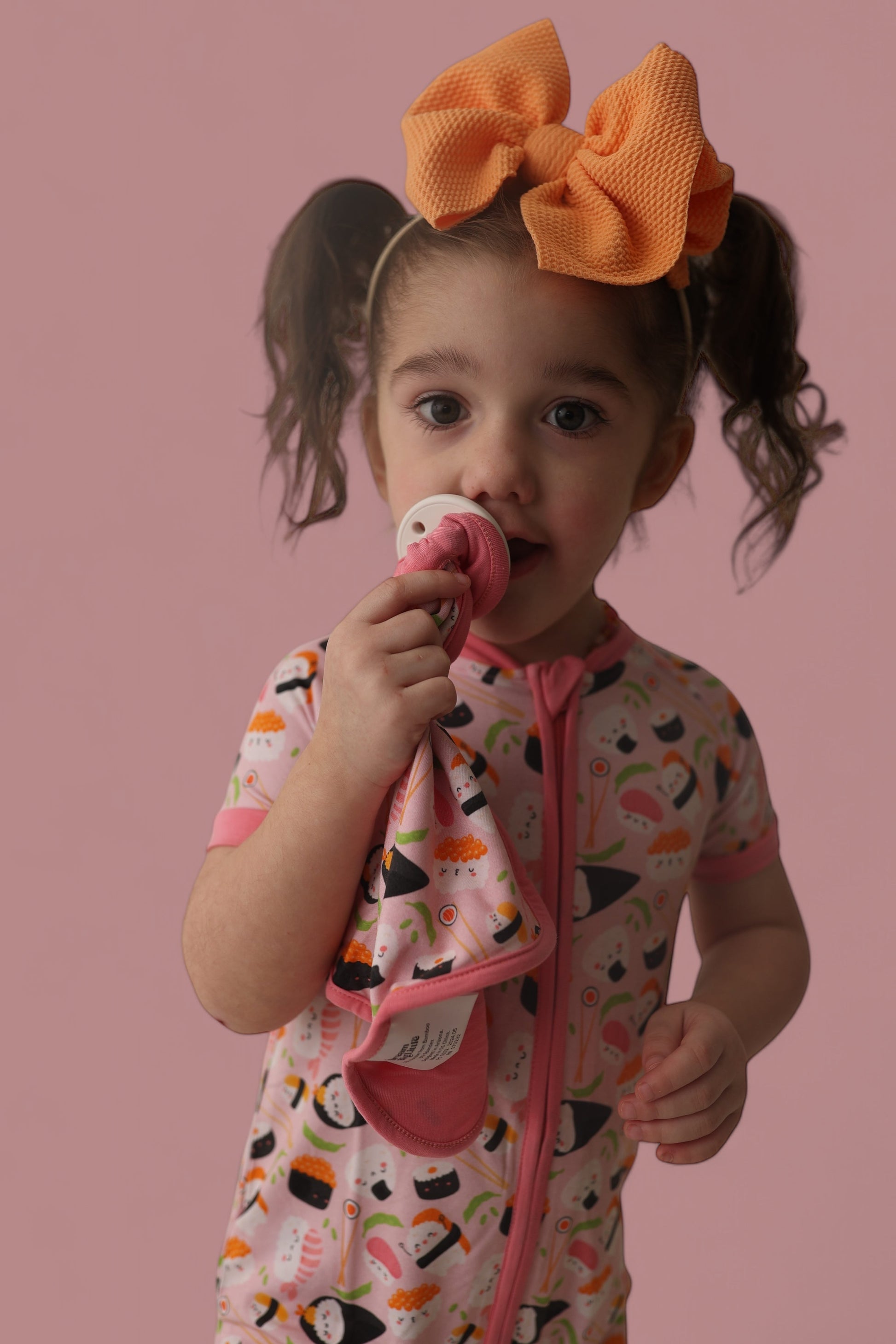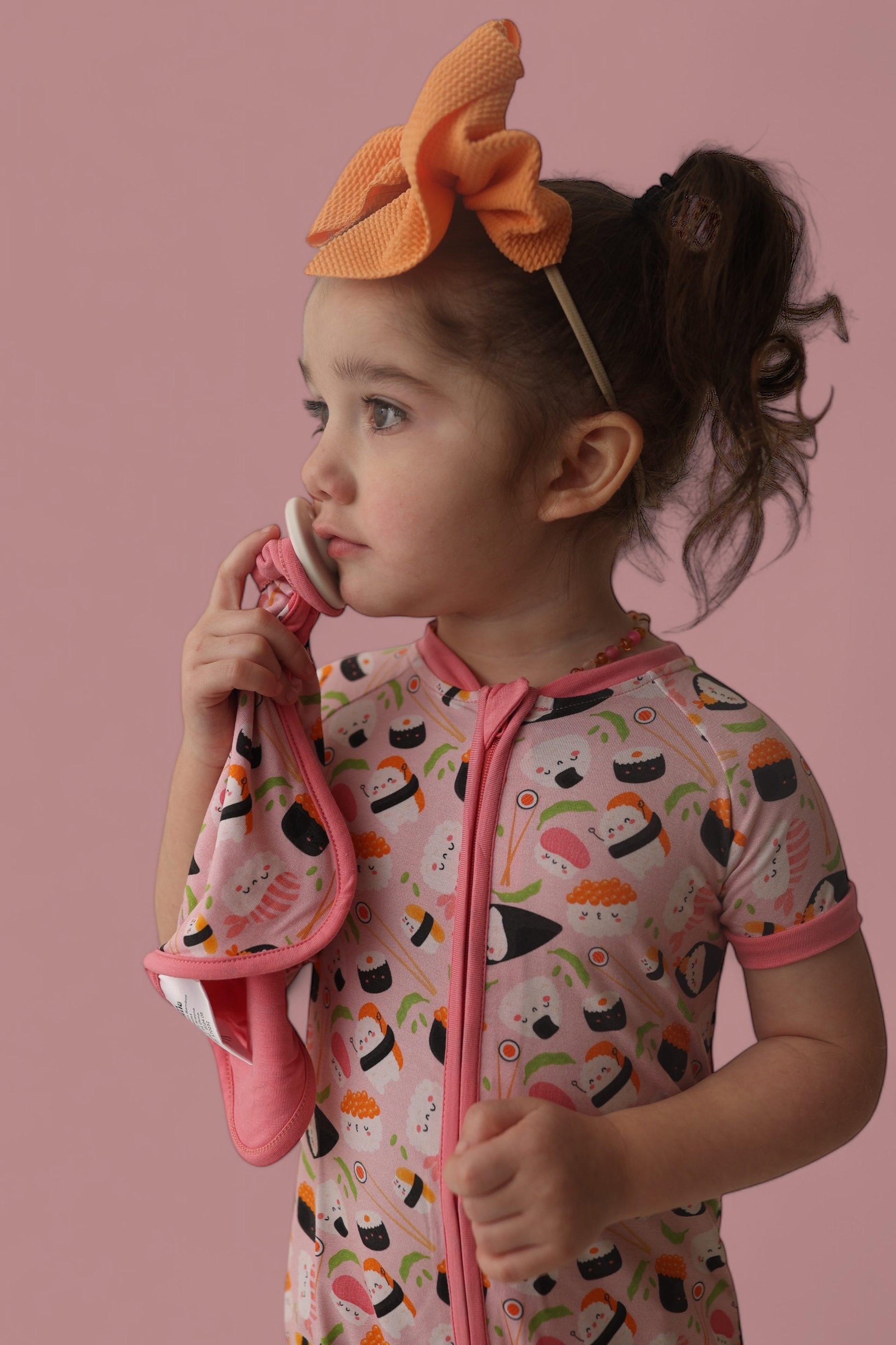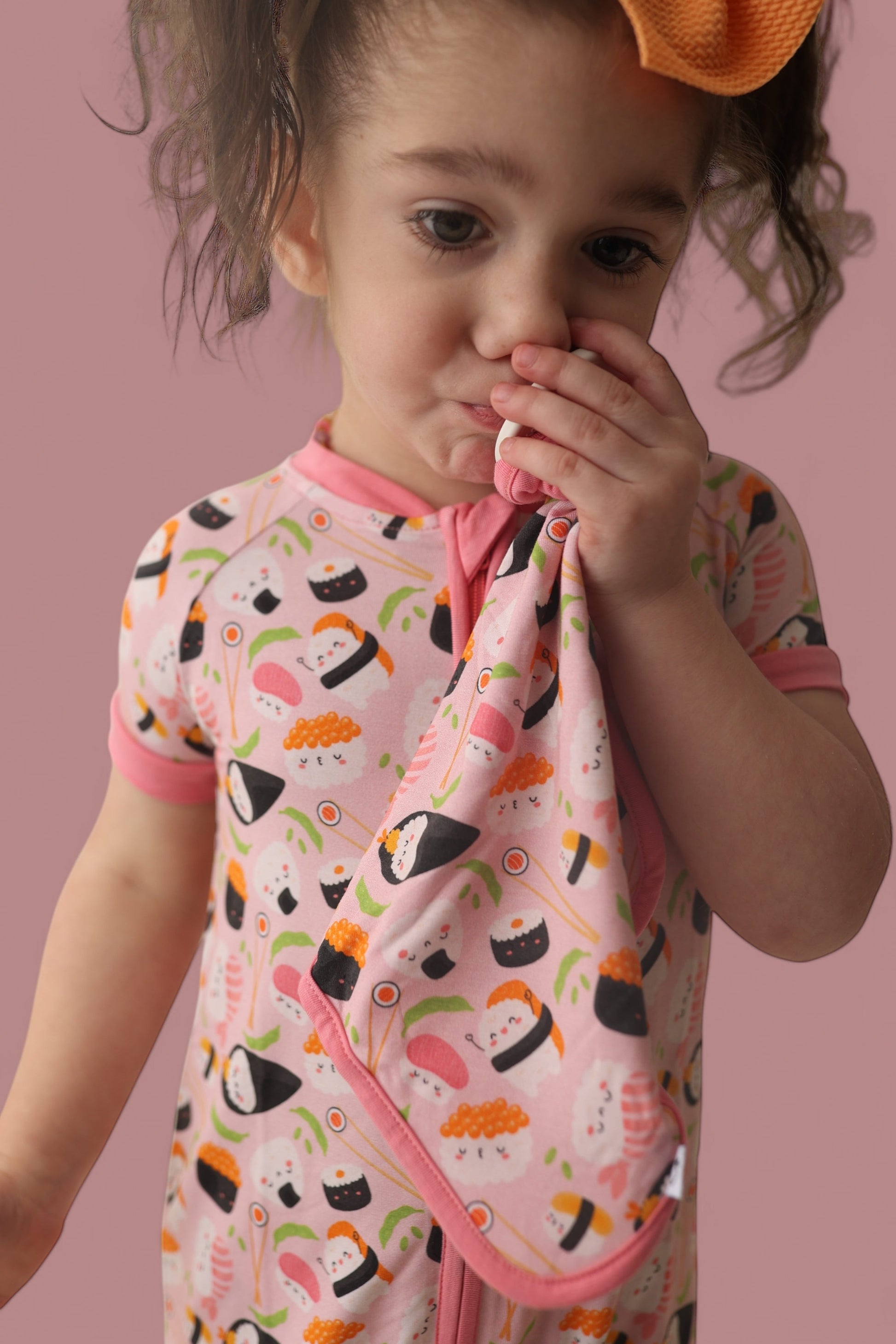 This Sweet Pea Sushi Dream Lovey is a must-have for any sushi enthusiast looking to add a fun touch to their nursery. People will be asking where you found such a cute print—tell them to visit DreamBigLittleCo.com for more!