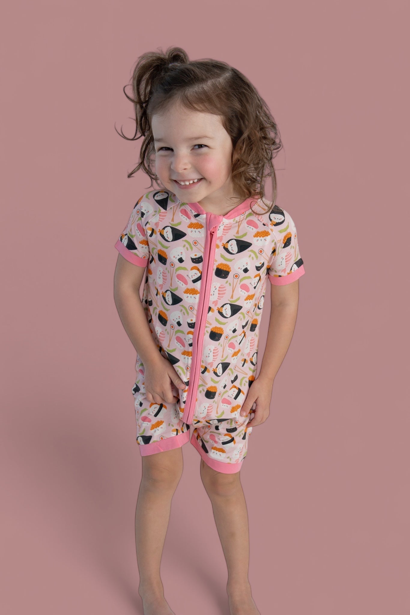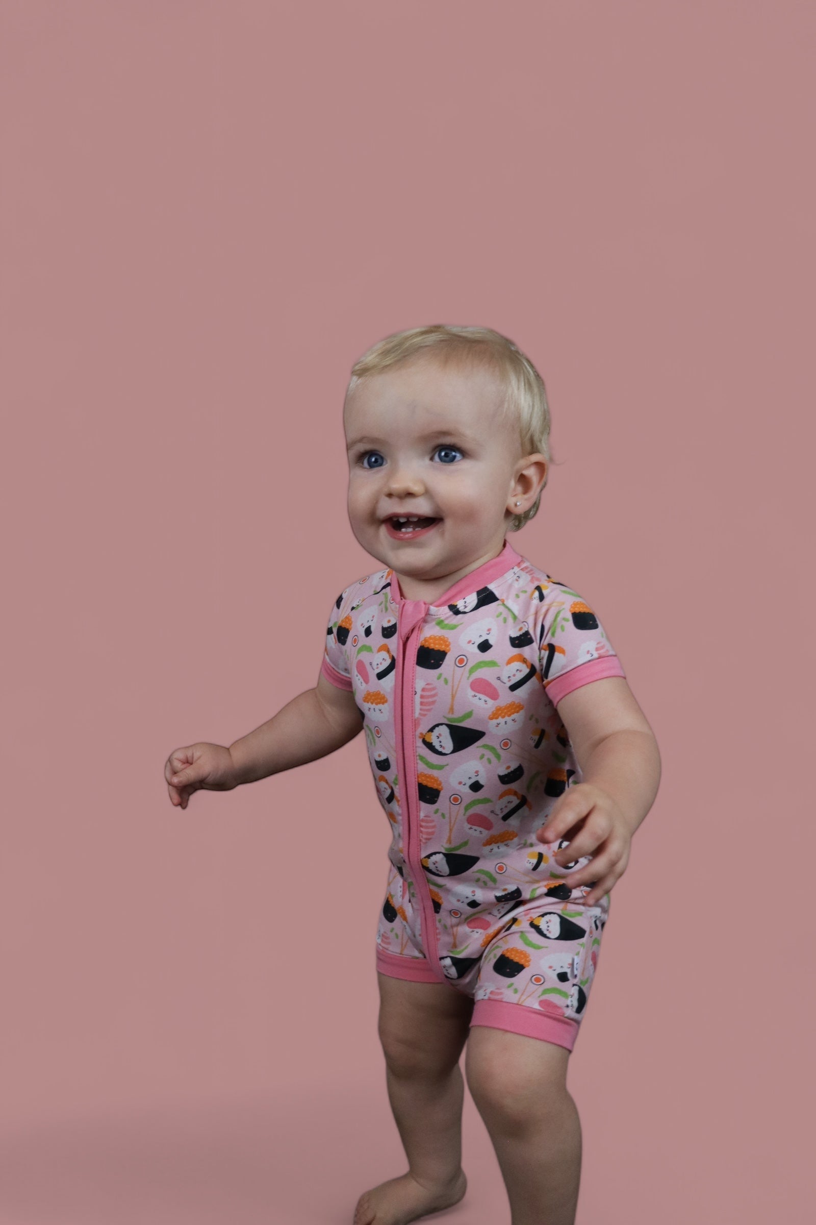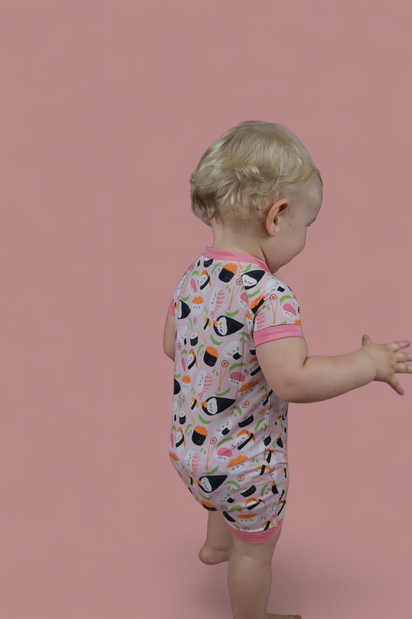 Perfect for summer days, playdates, and beyond, the Sweet Pea Sushi Dream Shortie Romper is sure to become your child's go-to outfit. It's designed for snuggles, fun, and easy wear, so your little sushi lover can look cute while feeling cozy all day long! A fun addition to any wardrobe, we promise you’ll love it just as much as your little one does!
