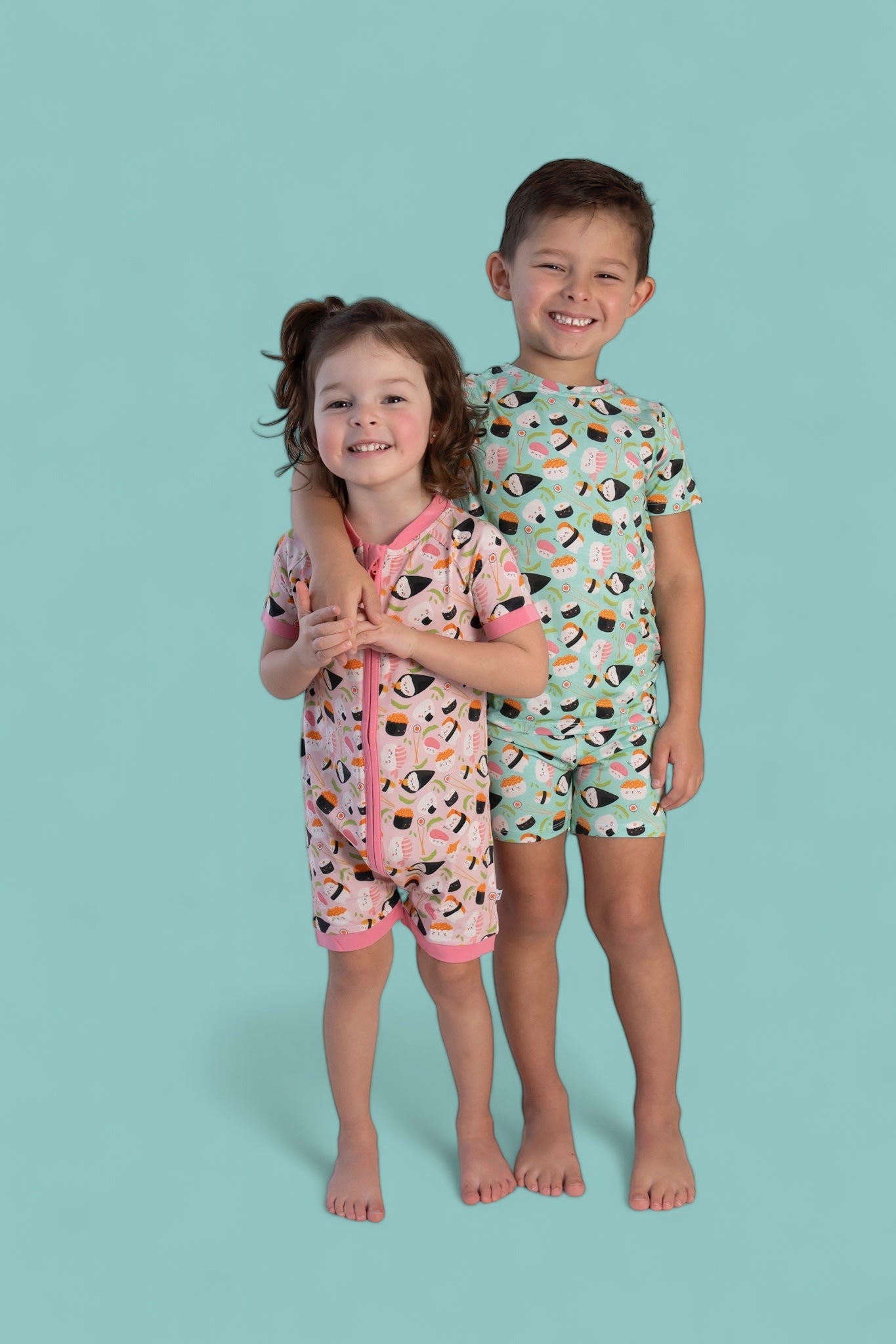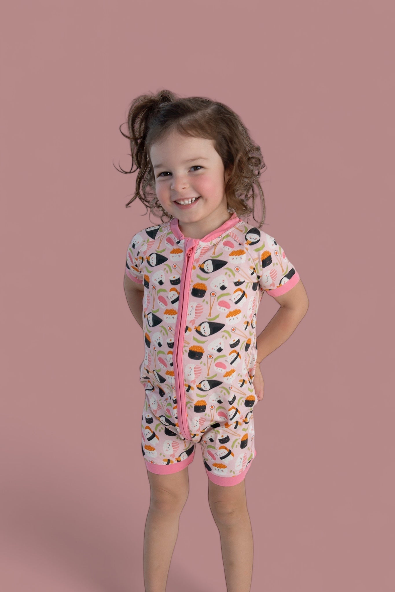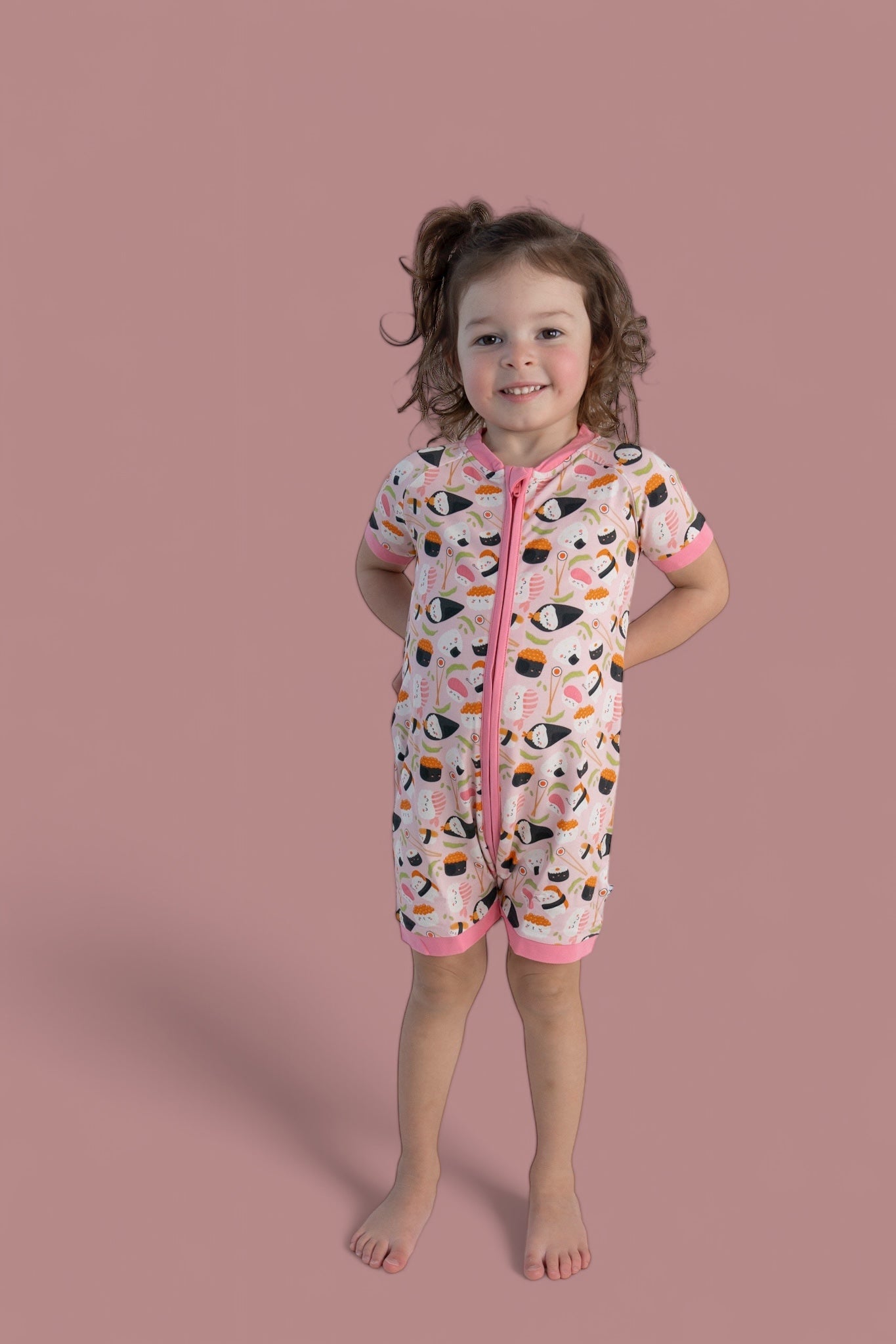 Perfect for summer days, playdates, and beyond, the Sweet Pea Sushi Dream Shortie Romper is sure to become your child's go-to outfit. It's designed for snuggles, fun, and easy wear, so your little sushi lover can look cute while feeling cozy all day long! A fun addition to any wardrobe, we promise you’ll love it just as much as your little one does!