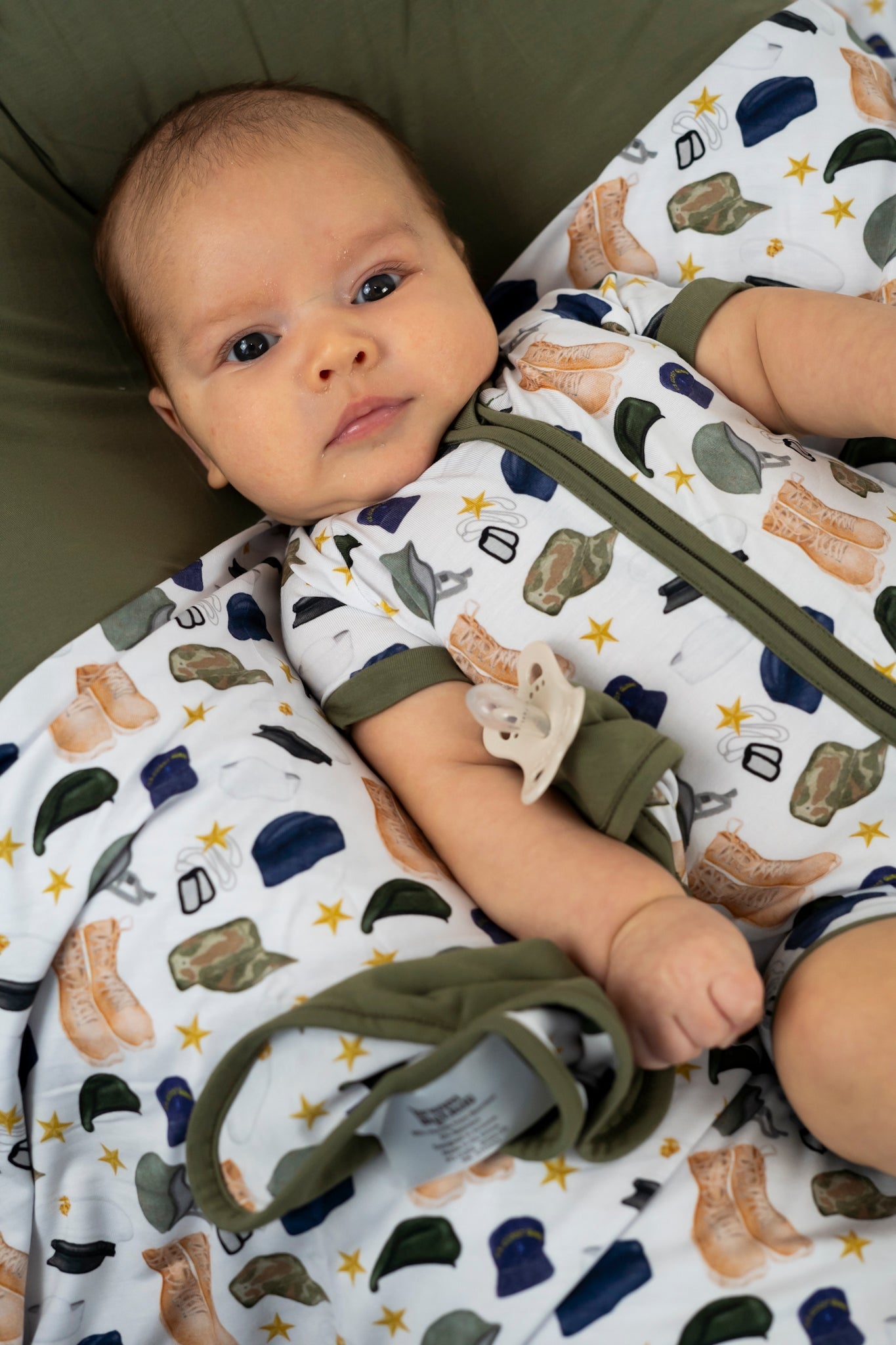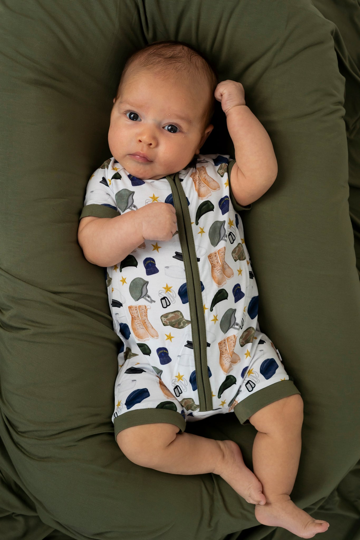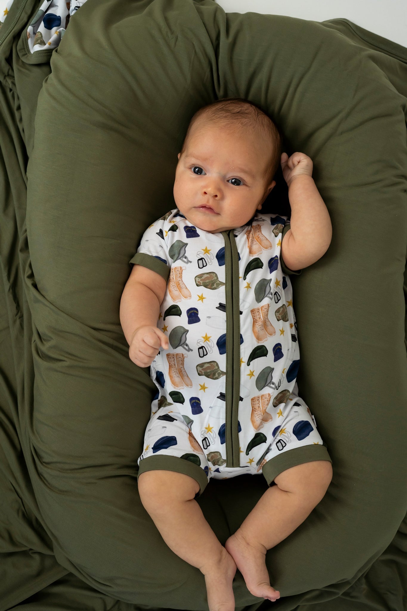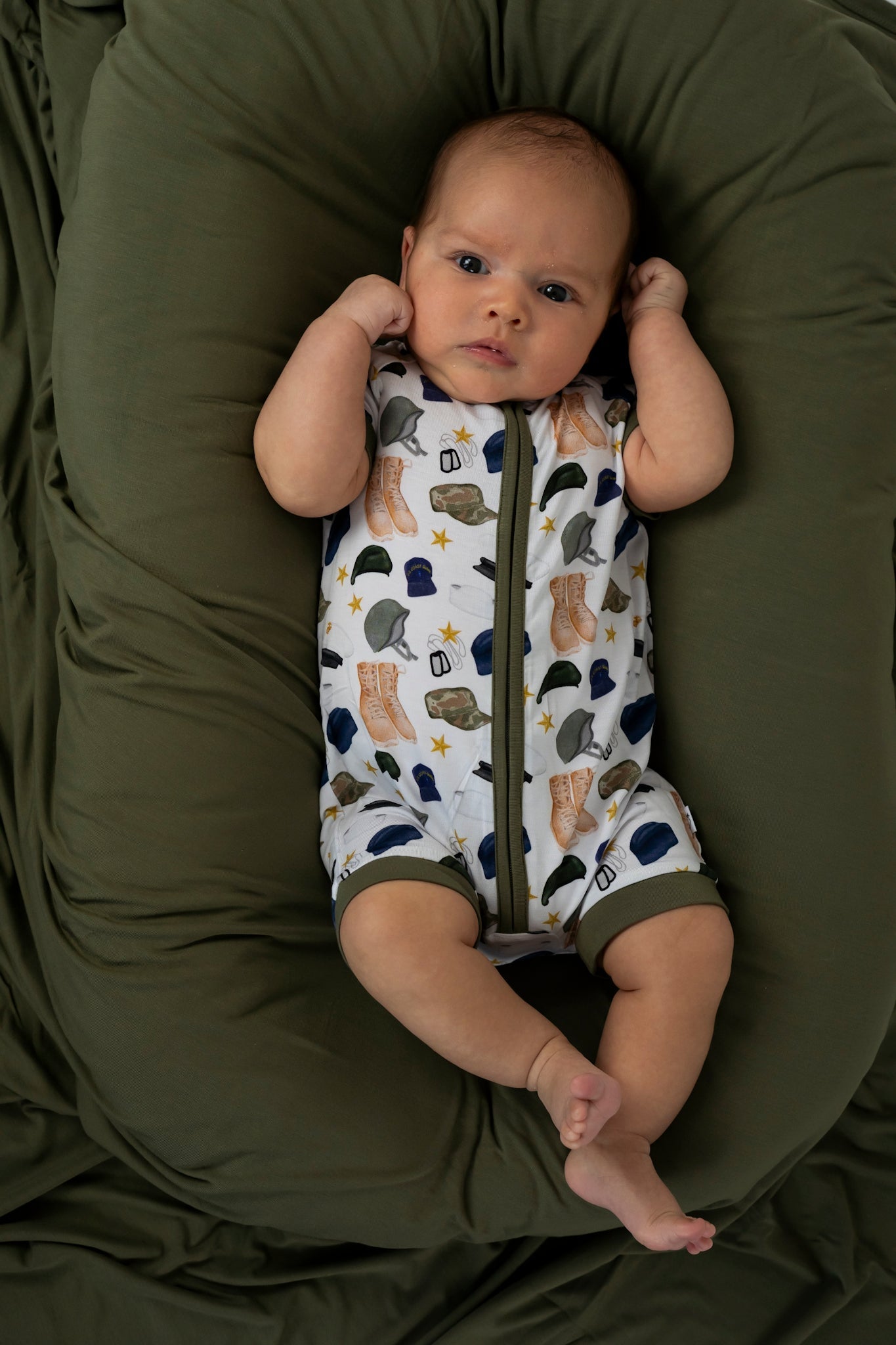 For those warm sleepers, you need to see our new Thank You for Your Service Dream Shortie! This charming short romper is expertly designed to facilitate seamless transitions from playtime to nap time, providing ultimate comfort and convenience. Ideal for those warm summer days, this bamboo shortie is crafted from the softest and most breathable bamboo viscose material, ensuring your baby remains cool and cozy, no matter the activity.
