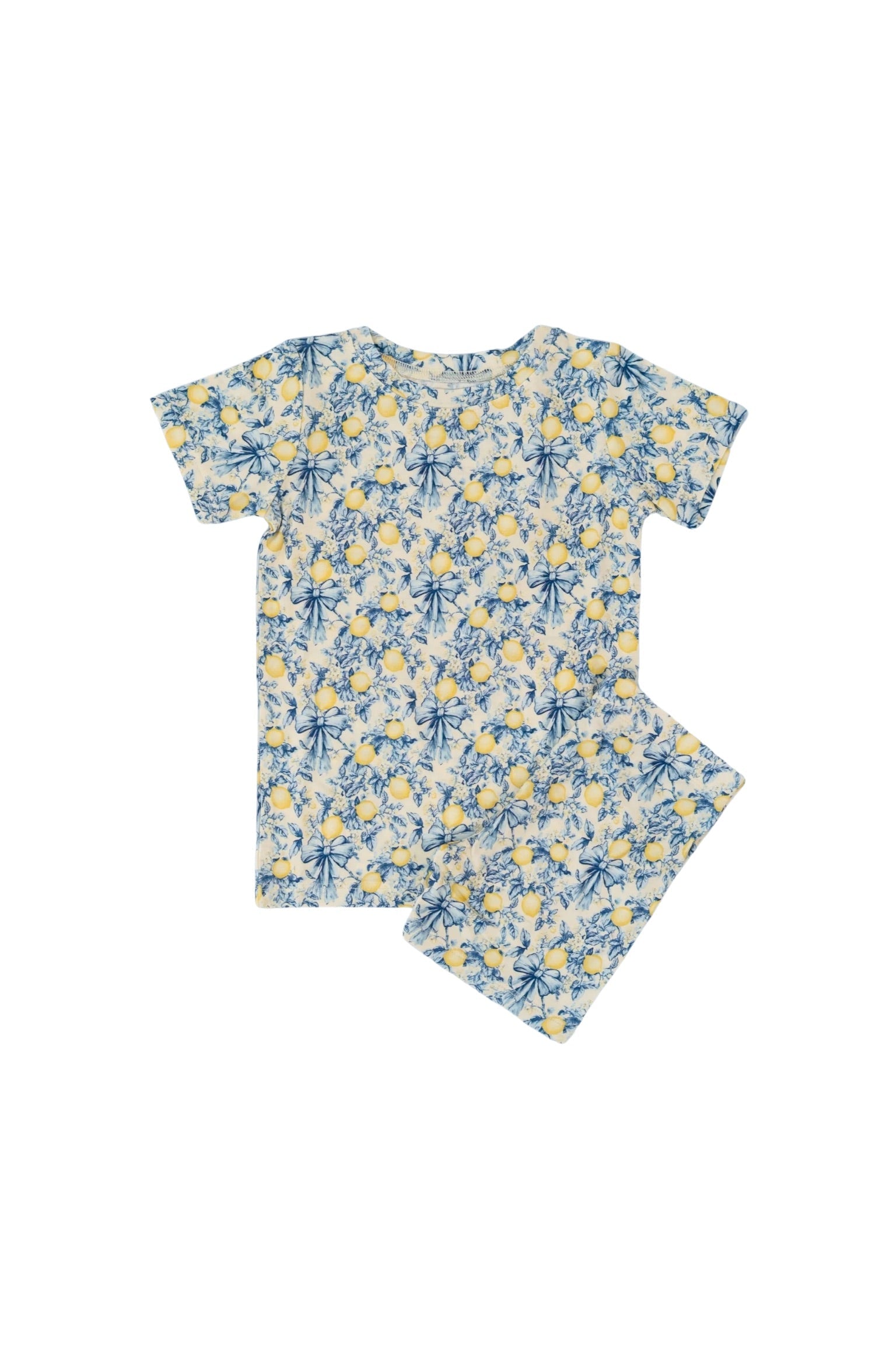 Drift into a lemon-scented reverie with our Vintage Citrus Toile Dream Short Set, a charming blend of French countryside elegance and timeless comfort. Adorned with delicate Toile de Jouy-inspired illustrations, this heirloom-worthy print features intricate botanical florals, graceful bows, and golden lemons set against a soft cream backdrop. Reminiscent of vintage Provencal gardens, this dreamy ensemble is perfect for little ones who adore classic charm with a touch of whimsy.